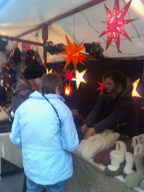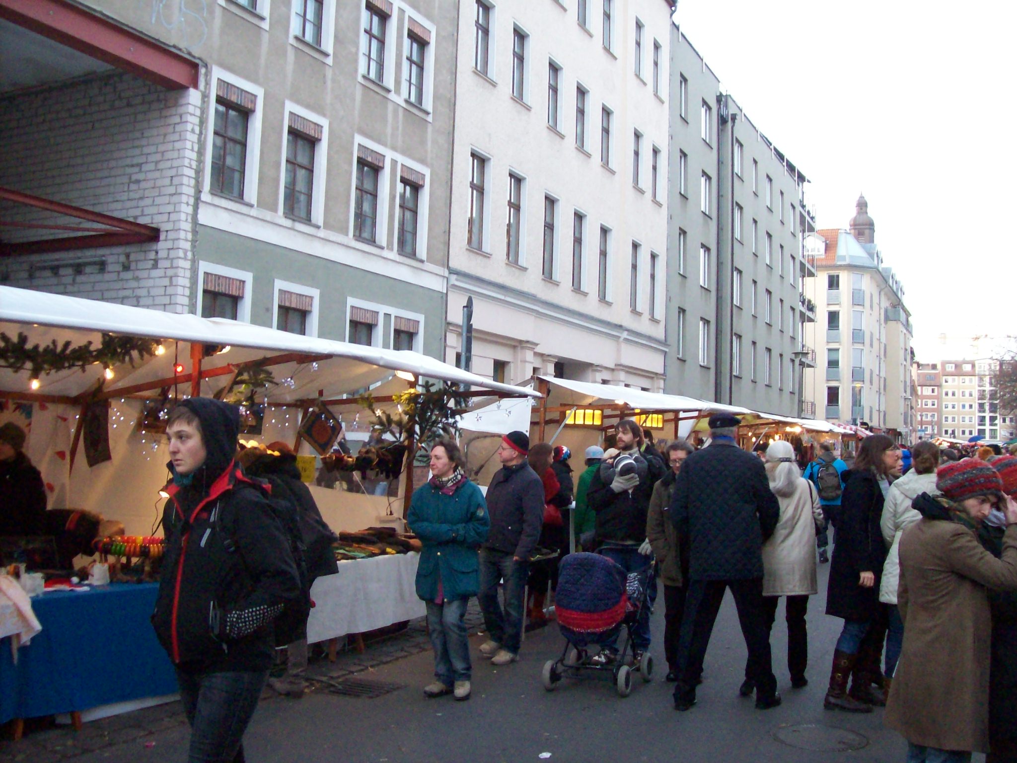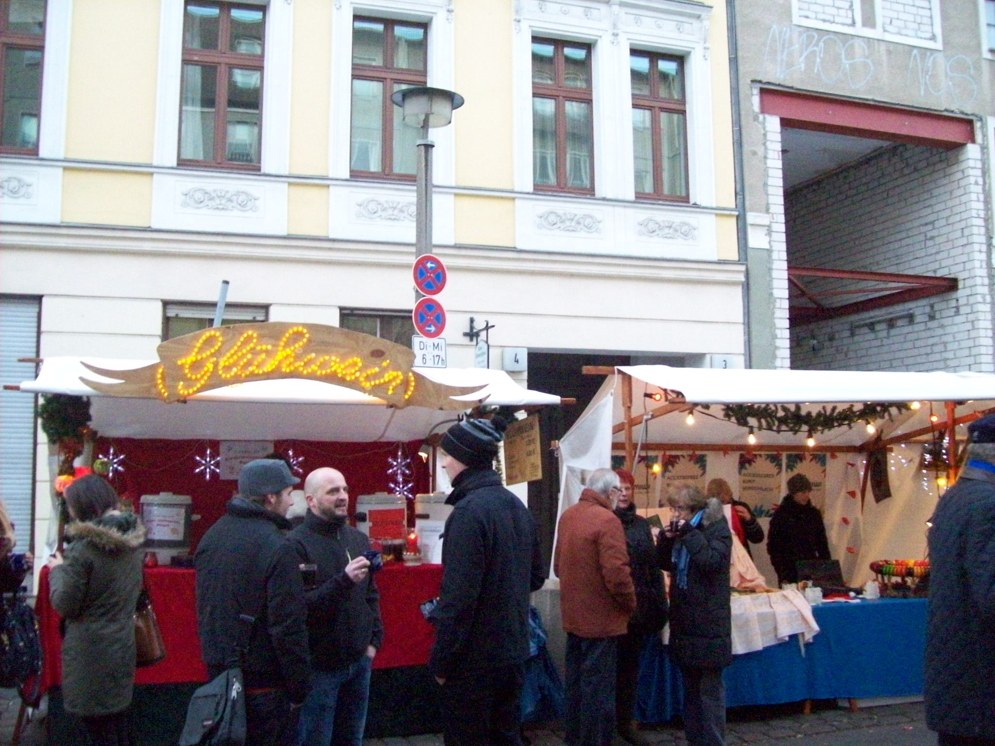Dimanche je suis allée faire un tour près d’Hackesher Markt, derrière, à l’angle de Sophienstraße et de Groß Hamburgerstraße se tenait le marché de Noël de l’environnement à part un stand Greenpeace et pour sauver les orangs-outans j’ai pas trop vu le raport avec l’environnement, y’avait quand même du Glühwein (vin chaud) et des saucisses.