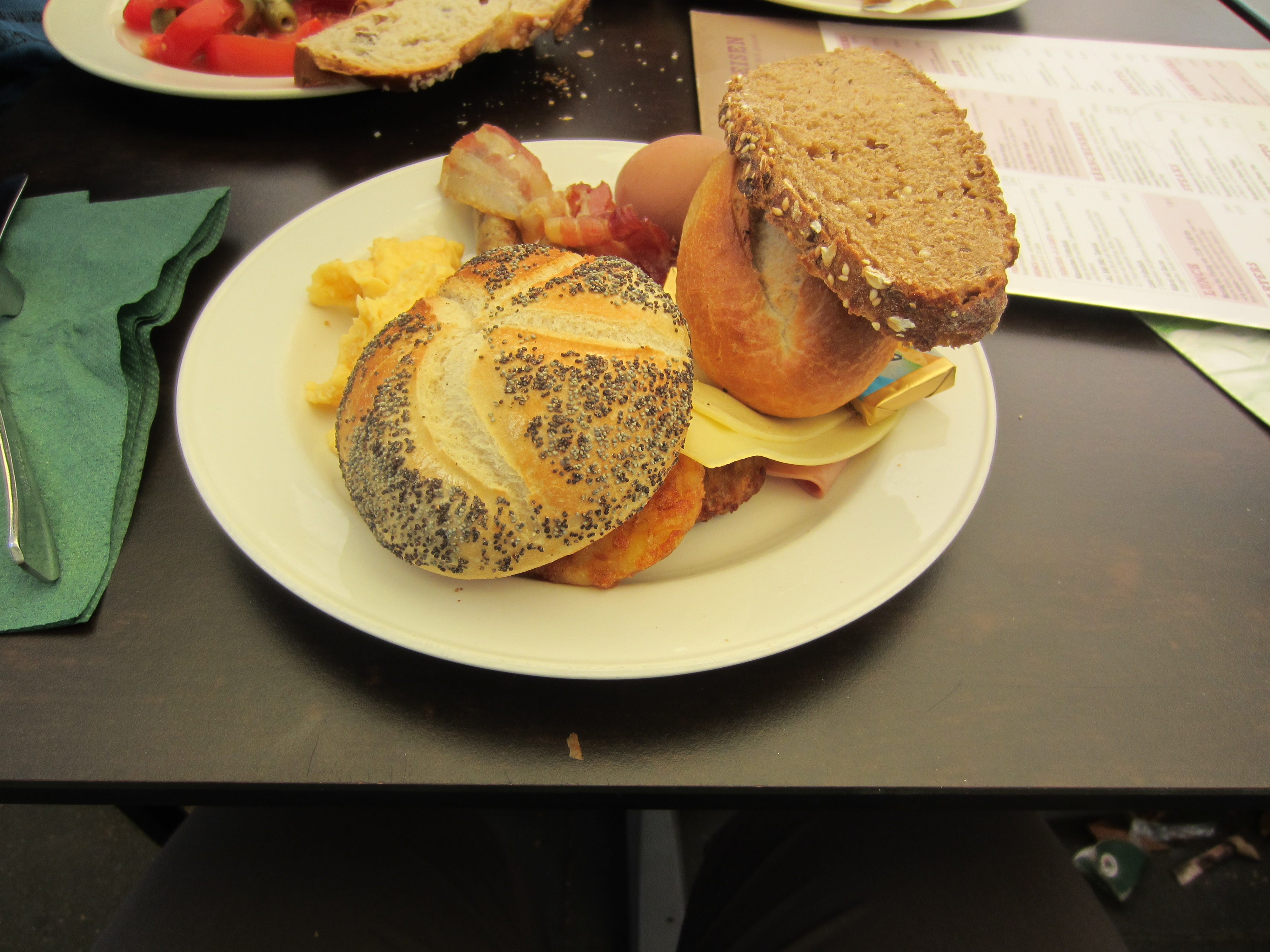 Dimanche, c’était l’anniversaire de D., d’abord brunch au All-in-one Bar sur Friesenplatz, un buffet de fou, 3 stations : sucré, salé et viennoiseries/pain. Le soleil toujours au RDV, un très bon moment avec festoyage de vieillesse et remplissage de ventre.