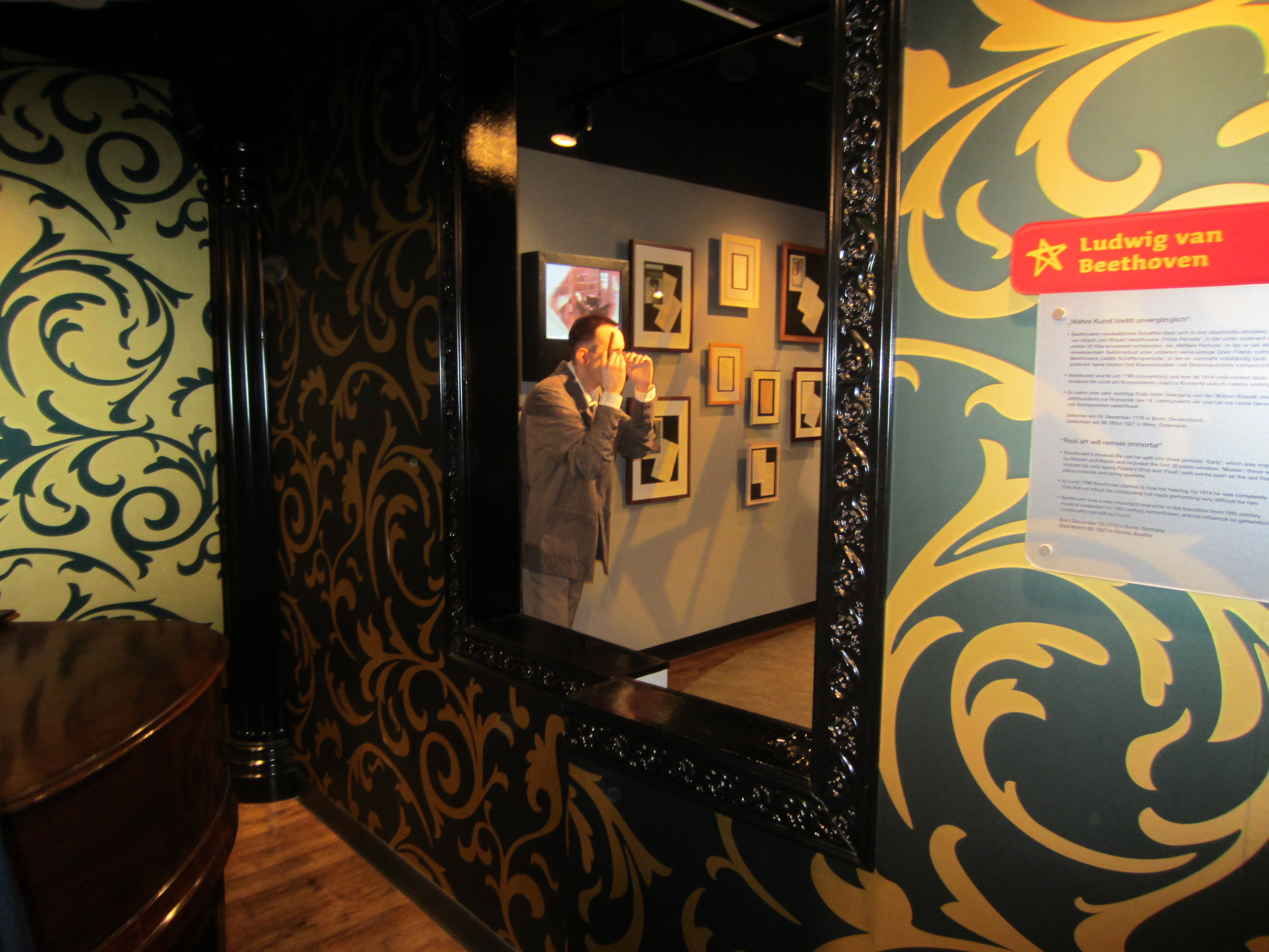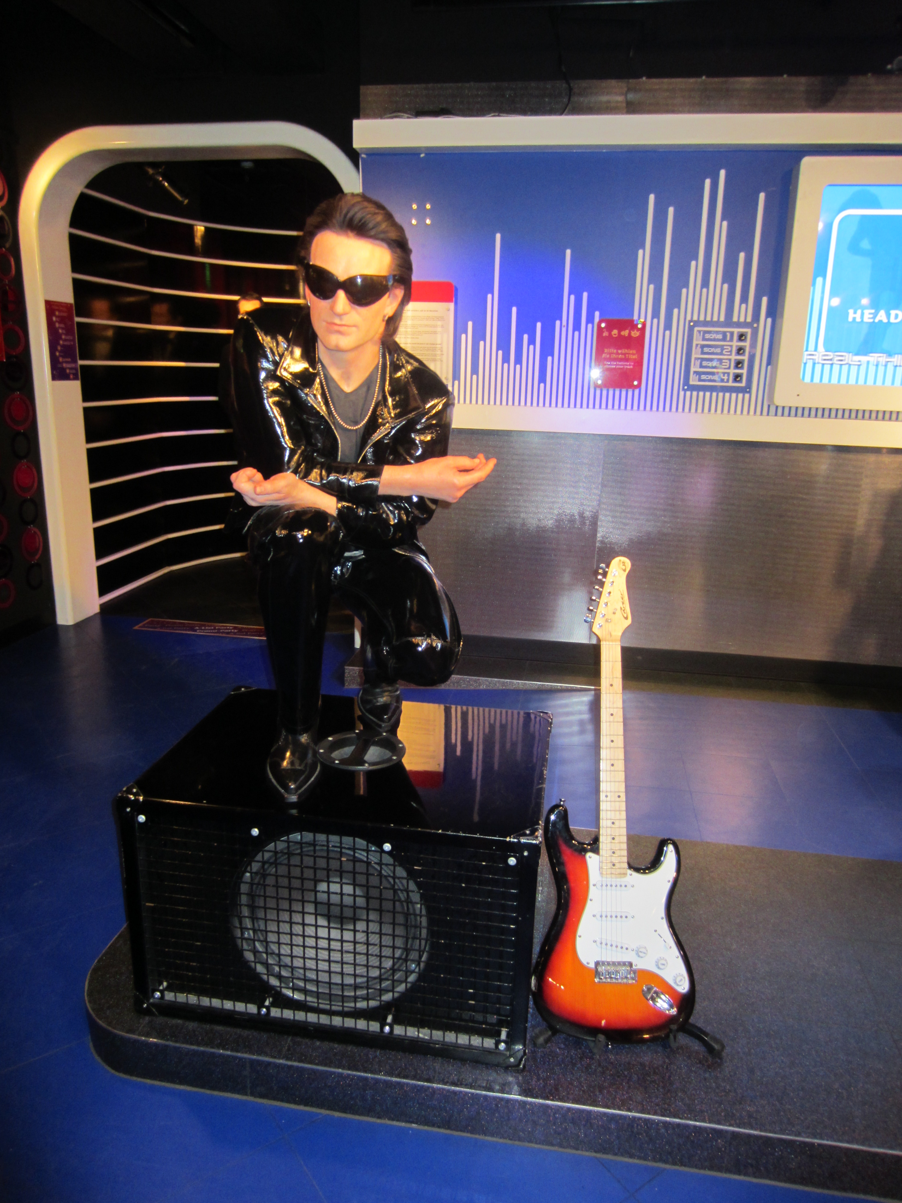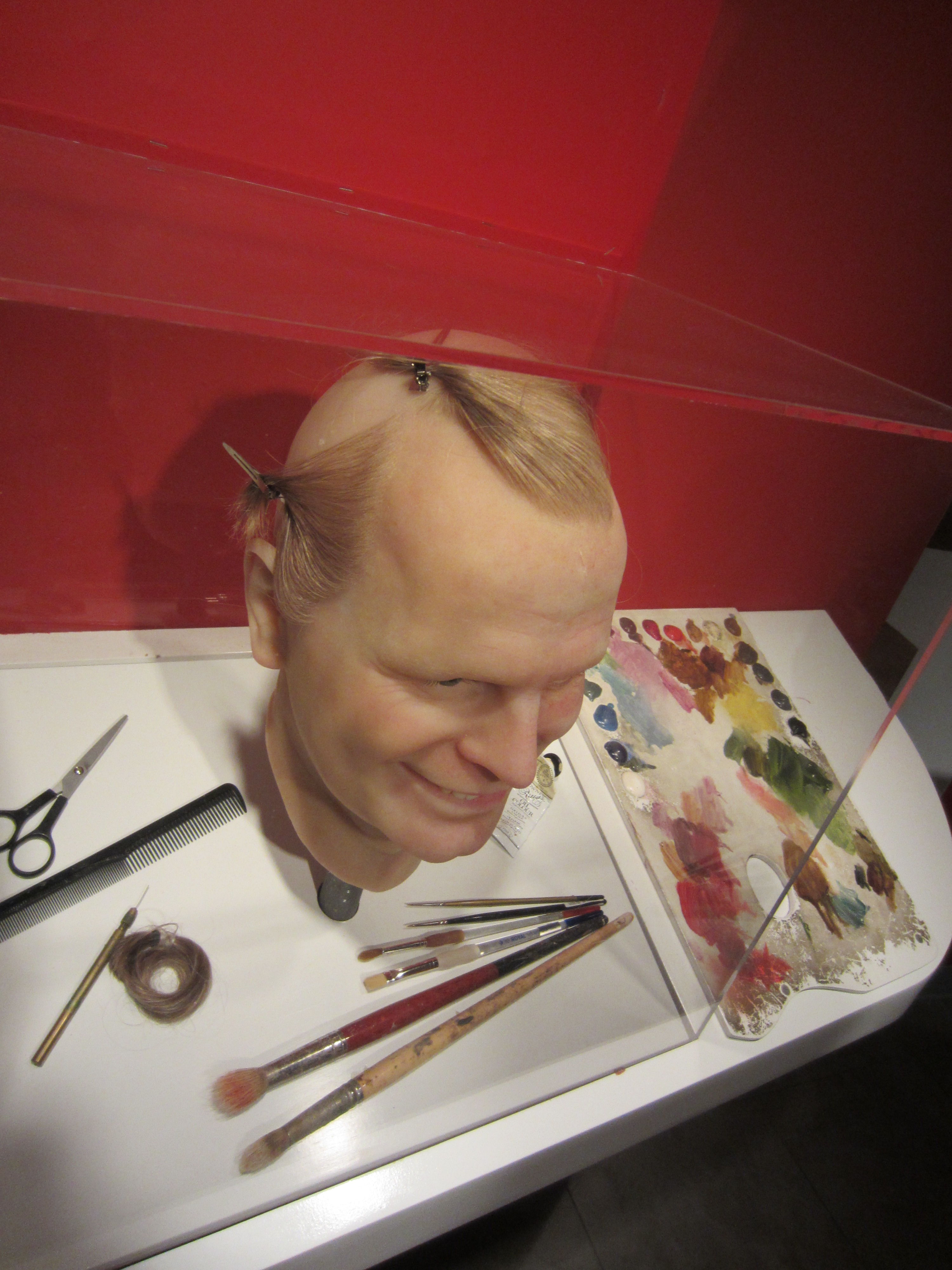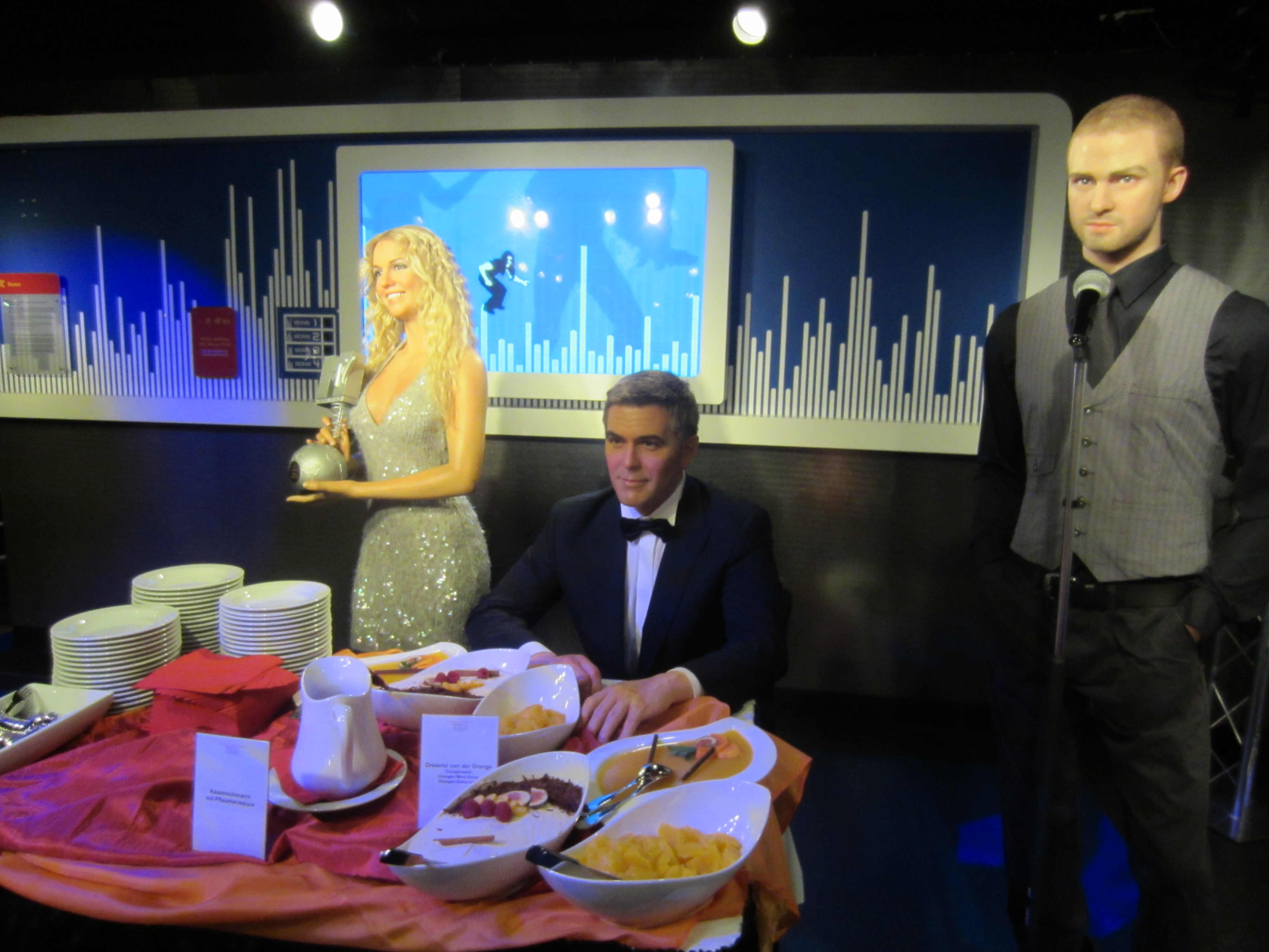 Ils ont donc des offres d’événementiel et on peut y dîner. On a été accueillis par coupes de champagne et de jus d’orange, visite libre du musée, certaines statues font peur, dont celle d’Anne Frank, elle n’est pas très bien faite. J’ai fait la visite très vite car ça ne me passionne pas, la partie interessante était donc le bar et le buffet. D’ailleurs on a été servis par Georges Clooney et Tom Cruise entre autres.