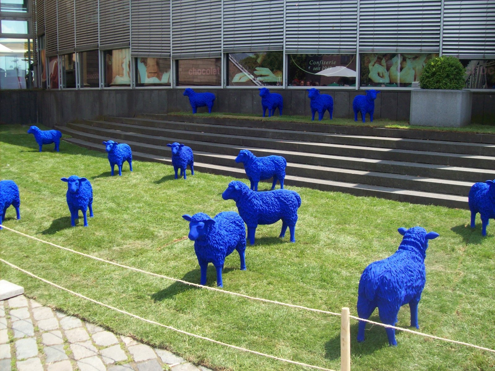 Des moutons bleus devant le Musée du chocolat de Cologne