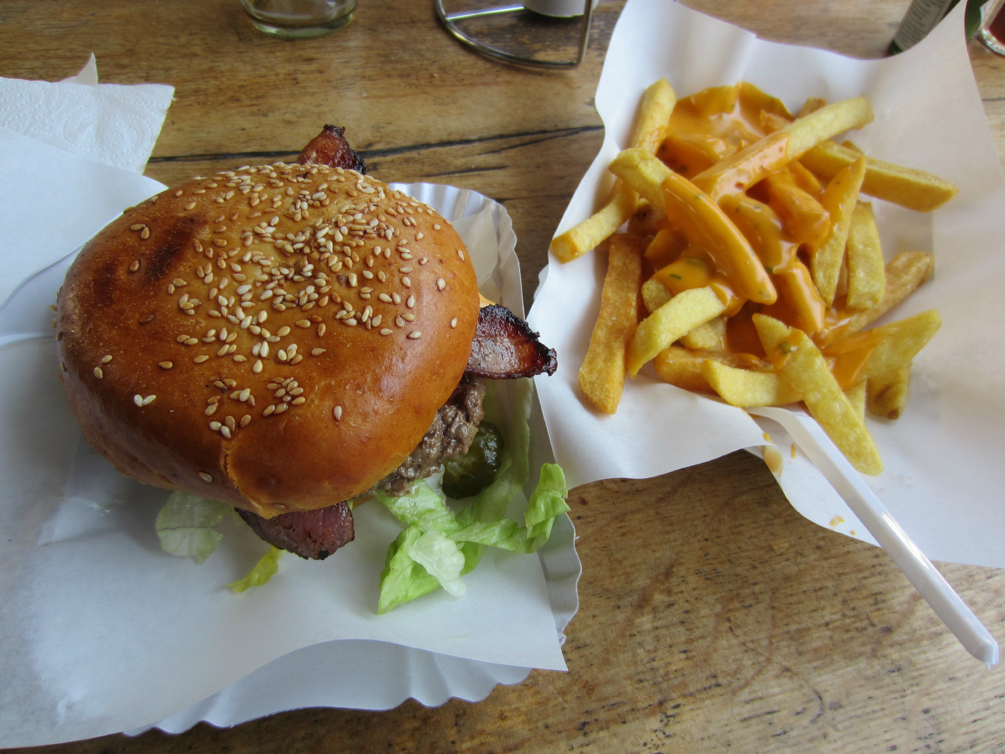 Cela fait 2 ans et demi que je bosse pas loin et j’y suis enfin allée la semaine dernière pour un déjeuner avec des collègues. Un BBQ Burger et des frites au fromage, très bon ! L’attente peut être un peu longue et ce peut-être dur de trouver une table libre, surtout s’il fait beau mais cela vaut le coup. Par contre le meilleur de Berlin peut-être pas, mais vraiment pas mal du tout !