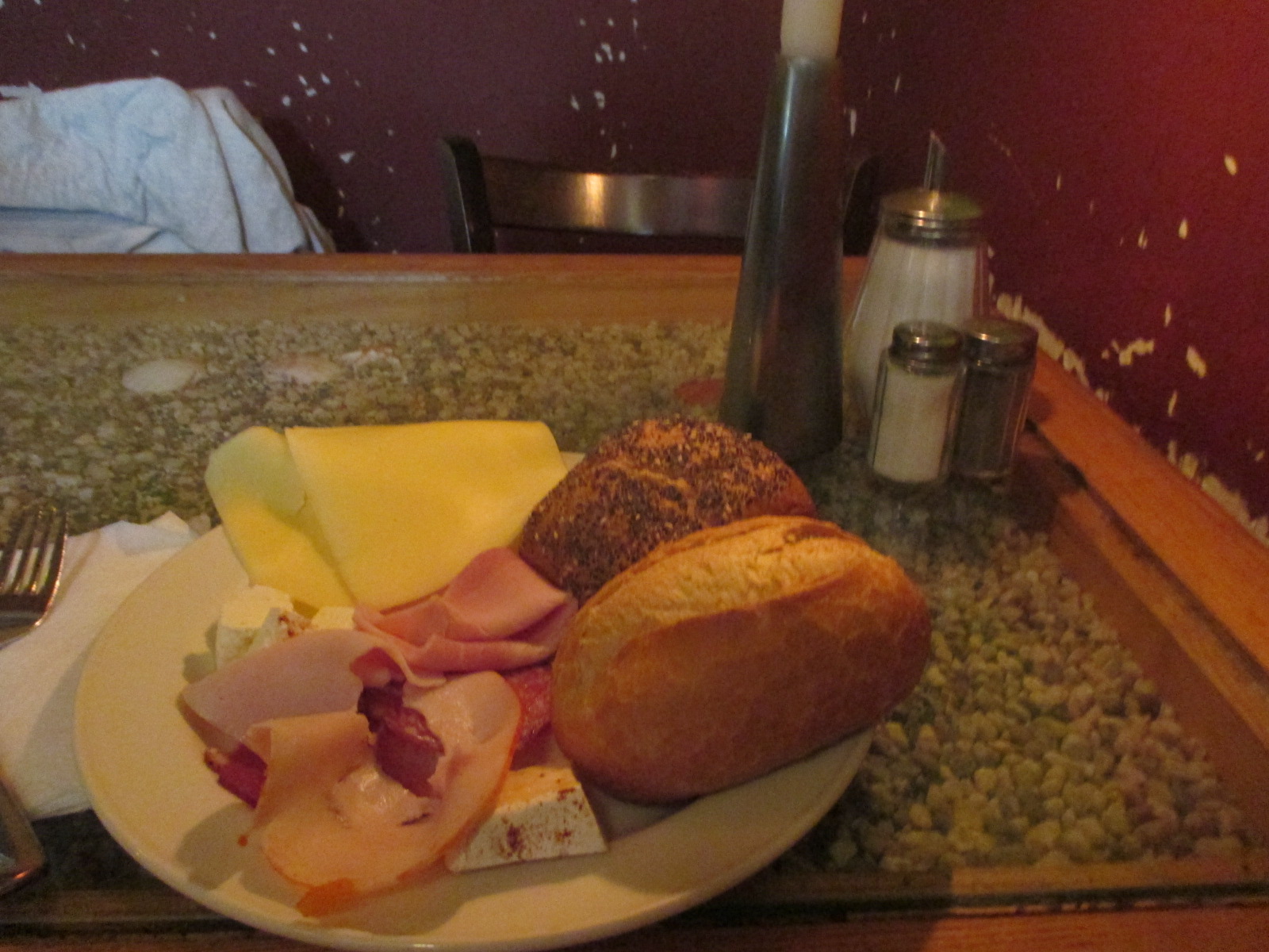 Pour 10€, vous avez accès à un buffet assez fourni : croissants, pain, céréales, crèmes dessert, tomate/mozza, fromages, charcuterie, salades, oeufs, omelette, saucisses, divers plats chauds,… De quoi satisfaire tout le monde. Mais le must c’est la station gaufres ! Deux gaufriers et la de pâte sont en libre service, avec sucre glace, sauce chocolat et canelle en poudre à disposition, faut parfois être patient pour y accéder, des fois un peu de chance et pas d’attente autre que celle de la cuisson.