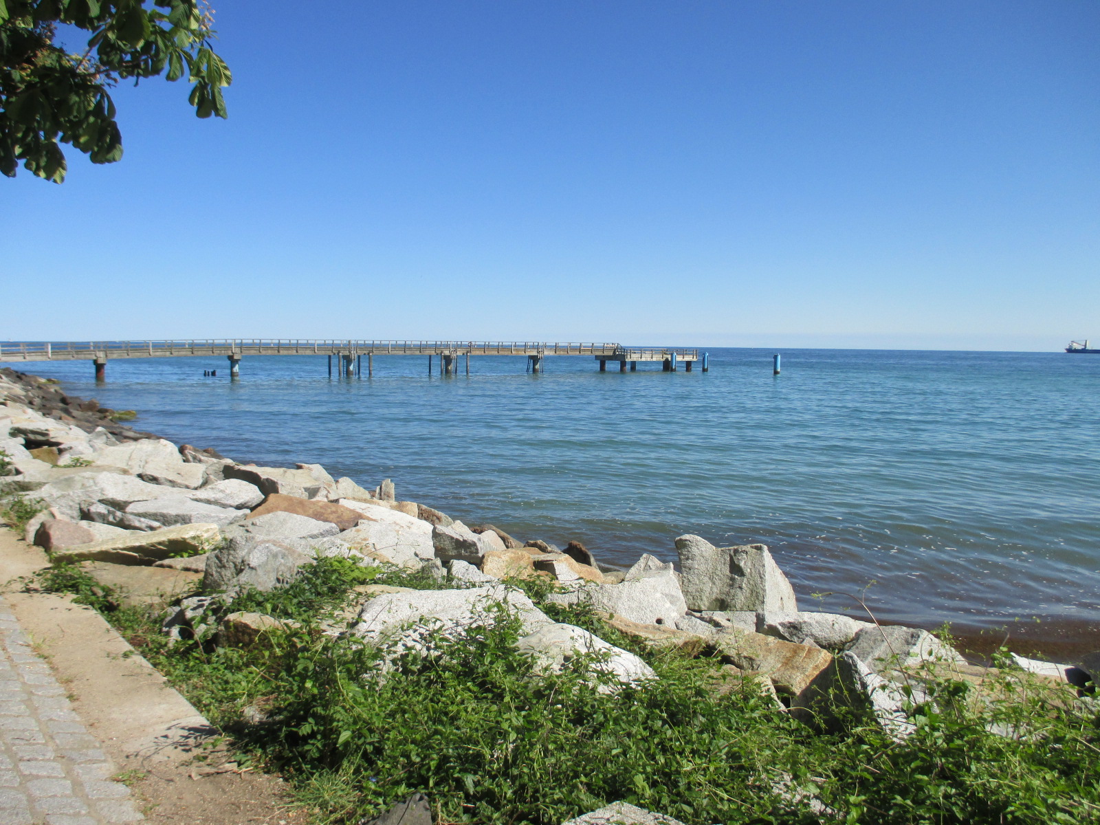 Ensuite, je pense aller sur la promenade vers la plage puis retour vers le port jusqu’au sous-marin transformé en musée, puis le pont piéton pour remonter dans les hauteurs de la ville. Ce pont piéton qui relie le haut de Sassnitz au port est aussi appelé « le balcon sur la mer ». Si j’ai bien compris, avant il y avait aussi le départ des ferrys en connexion avec le train direction la Scandinavie, Sassnitz est aussi surnommée « la porte vers la Scandinavie », mais tout a été déplacé ailleurs. En tout cas, le port est magnifique, je suis charmée par Sassnitz.