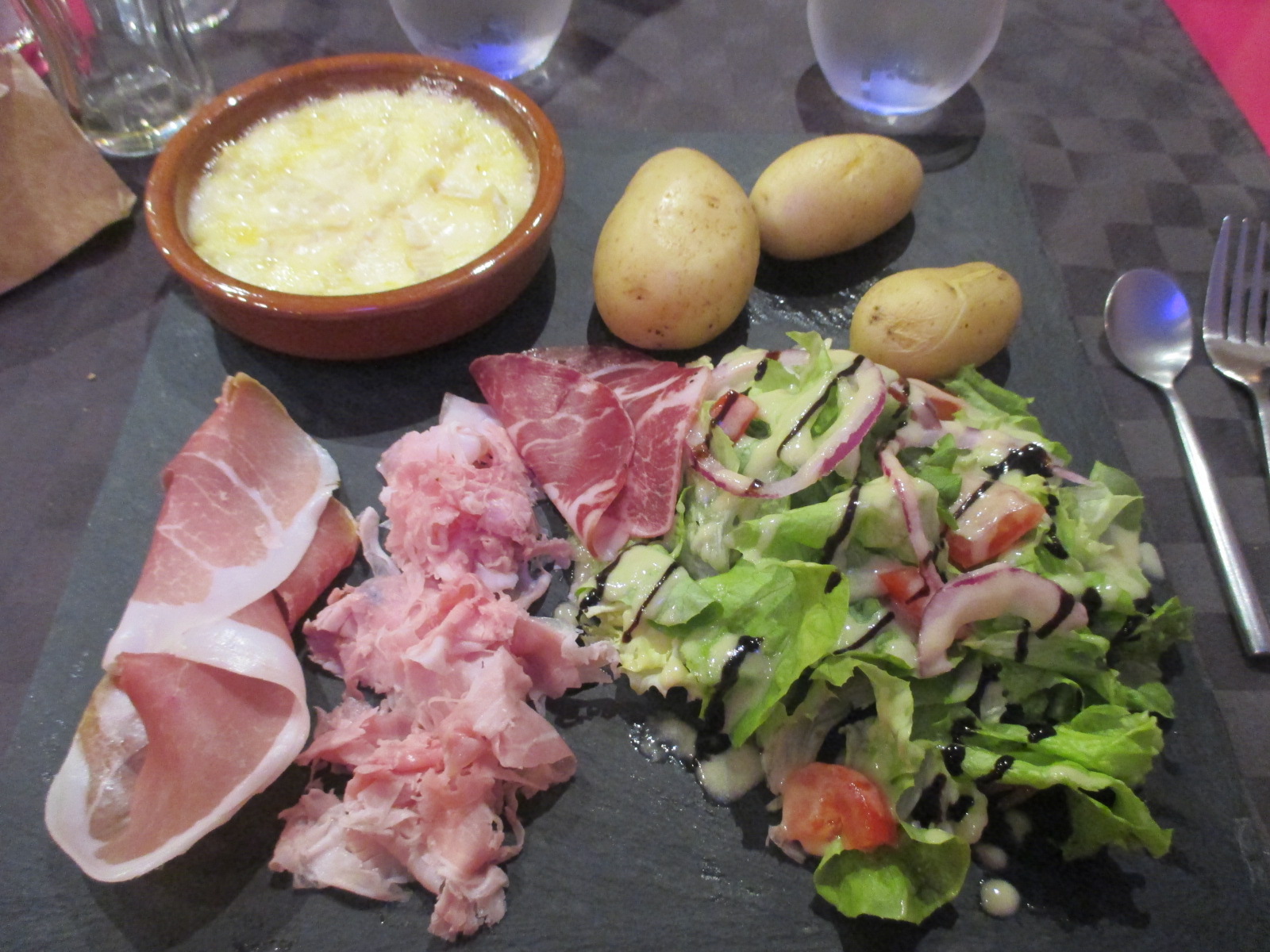 Le jour de mon arrivée, comme tout était fermé en Allemagne (j’ai atteri à Sarrebruck) pour cause de fête nationale, avec mes parents nous sommes allées nous promener à Metz et pour déjeuner nous nous sommes rendus du côté du marché couvert près de la cathédrale. La Cave des Trappistes est un sympathique petit restaurant où il peut être conseillé de réserver, arrivés assez tôt nous avons eu la dernière table de libre.