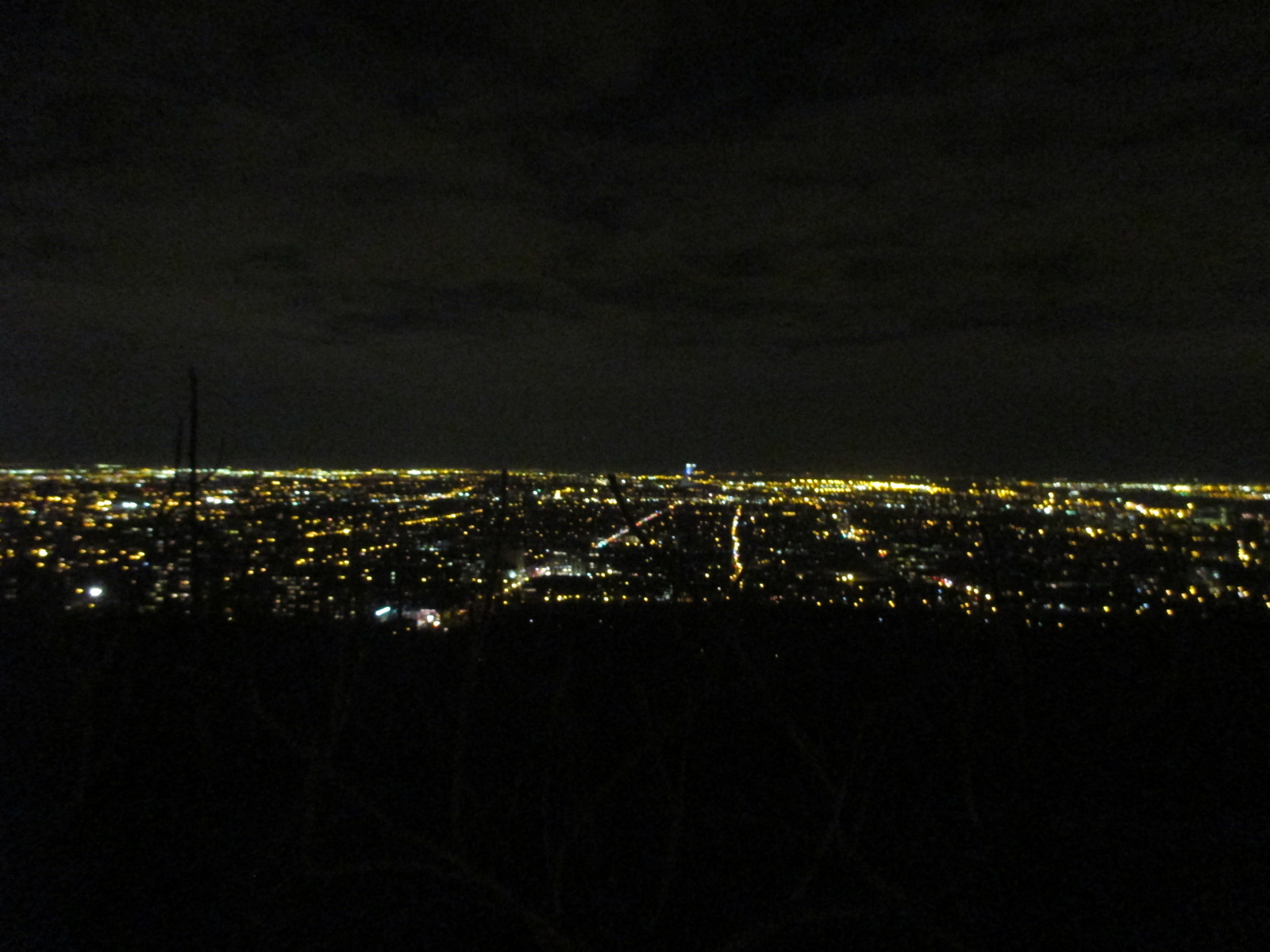 Arrivée à destination, j’avais un grand sourire, depuis le temps que je rêve de visiter le Canada et je prépare ce voyage depuis cet été. Une fois la frontière passée et mon passeport tamponné (youpi !), ma valise était déjà arrivée. Mon amie E. et son fiancé, A., m’attendaient. Avant de me déposer à l’hôtel, ils m’ont emmenée à un beau point de vue sur la ville illuminée. J’ai même vu un raton-laveur, E. me disait qu’ils sont souvent là à l’affût de nourriture, surtout de frites.