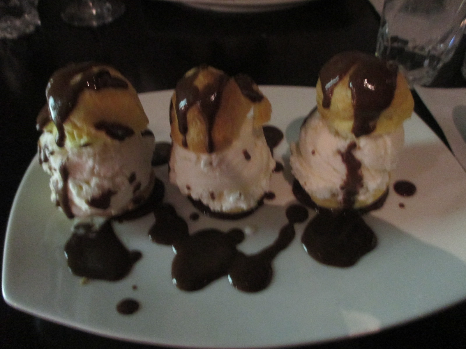 Je suis allée souper dans ce restaurant du centre (rue Crescent) avec mon ami berlinois. L’endroit a un cadre sobre, très agréable. Le personnel est très sympa et le menu très alléchant. J’ai pris une bavette-frites, cuite comme demandée et avec de l’échalotte. S. a pris des moules et était satisfait également. En dessert, forcément des profiteroles, quand je les ai vues sur le menu, c’était évident ! Nous avons bien mangé, bonne adresse.