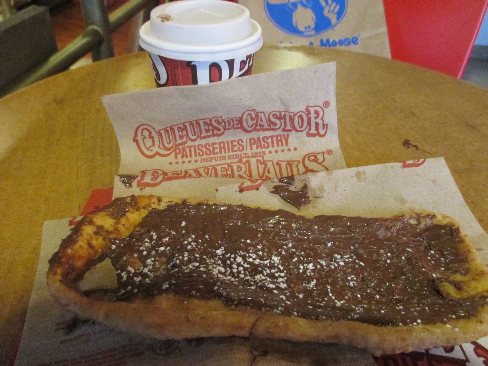 Pour une pause sucrée, je recommande une queue de castor. Cette pâtisserie est présente dans tout le Canada et je suis allée goûter cette spécialité en basse ville près du port. C’est de la pâte de blé aplatie comme une queue de castor et frite à l’huile. C’est servi chaud avec une garniture sucrée, sucre, canelle, chocolat,… C’est très très bon. Très calorique certes, parfait pour une pause lorsqu’on se balade toute la journée, surtout si il fait froid.