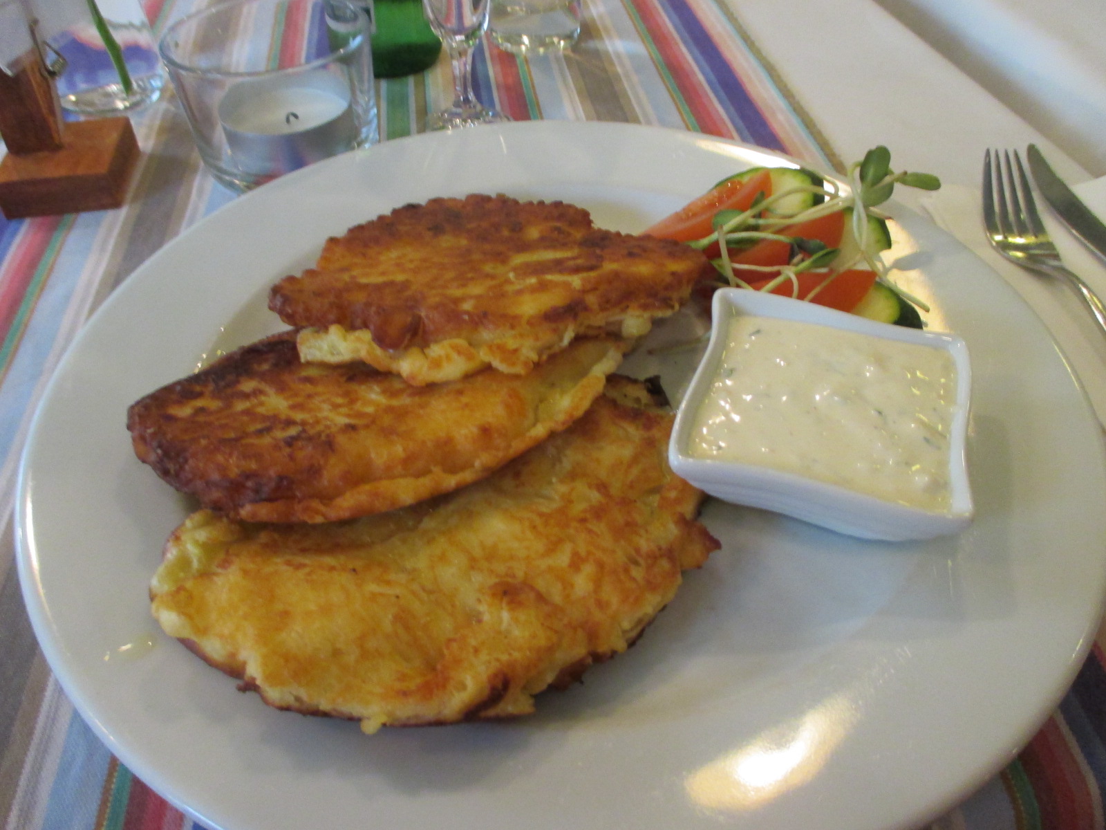 Ensuite, je continue ma balade et je tombe sur le restaurant dont un ami m’a parlé, il est venu à Varsovie l’été dernier et a bien aimé cet endroit. J’avoue qu’en passant devant, je ne me serais sûrement pas arrêtée. L’accueil est chaleureux et le personnel est aux petits soins. Je pensais d’abord prendre des pierogi, mais ceux de la carte ne m’inspiraient pas des masses, j’ai donc opté pour les galettes de choucroute avec sauce à l’ail, pas mal. Le tout bien sûr avec un peu de vodka. Là, je me régale avec un gâteau au chocolat. Je continuerai ensuite ma promenade. Je ne ferai sûrement pas grand chose ce soir, car demain je dois me lever tôt.