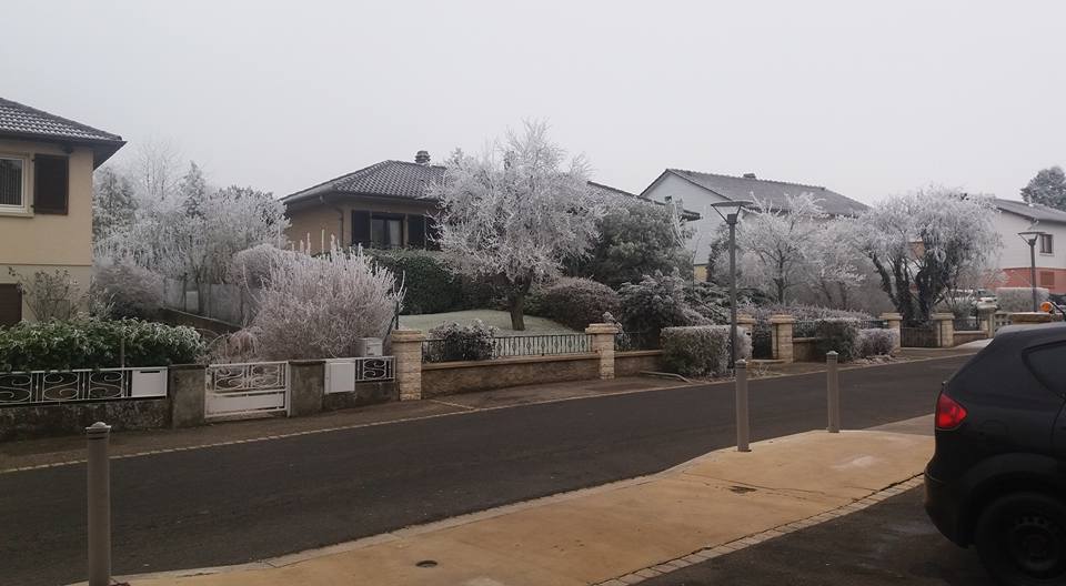 J’ai passé Nouvel An dans ce petit village à l’est de Metz et le 1er janvier je suis allée me balader dans le froid. Le givre couvrait les arbres, les champs étaient saupoudrés d’un blanc brillant, créant ainsi un paysage magnifique. Suivez-moi à travers les rues du village en passant par la mairie et son église et entre les champs qui s’étendent à perte de vue.