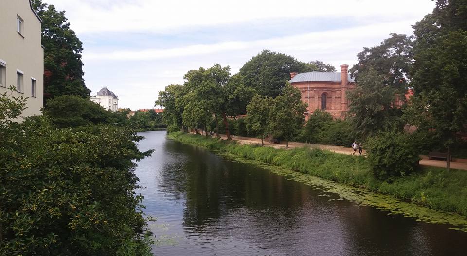 Une fois rassasiées, nous sommes parties nous balader le long des berges direction Dominsel (île de la cathédrale) et après quelques détours, notamment dans de jolis coins verdoyants, nous sommes arrivées à la cathédrale, un très beau bâtiment. Puis nous avons ensuite pris le chemin de l’Altstadt, toujours aussi jolie, des rues pavées, de belles maisons, tout calme et propre. Nous nous sommes arrêtées à un musée gratuit sur la réformation, puis l’hôtel de ville gardé par un chevalier qui semble avoir un problème avec ses parties génitales (position de main assez étrange). Nous avons ensuite continué un peu à l’aveugle, en finissant par tomber sur le mémorial pour les victimes de l’euthanasie du système T-4 sous les nazis, pas très joyeux.