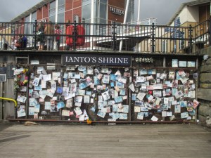Arrivée à terre, je cherche les toilettes et tombe d’abord sur le Ianto’s Shrine. Ils ont donc un mémorial pour un personnage de fiction mort… C’est vrai que Torchwood est censé se trouver sous Cardiff Bay. Avec tout ça, je ne trouve pas de WC et deviens de moins en moins concentrée, j’atterris au Millenium Center et bingo. Je ressors du centre, sourire aux lèvres, face à un décor que j’ai si souvent vu sur mon petit écran. Il y a une petite foire avec ponton et sable, d’un côté dommage, mais je cherche quand-même l’entrée de Torchwood… en vain. Je me balade ensuite dans la baie, c’est très sympa, il y a également une grande roue, alors forcément… La vue d’en haut est jolie, sur la baie, la mer, le village en face. Par la suite,