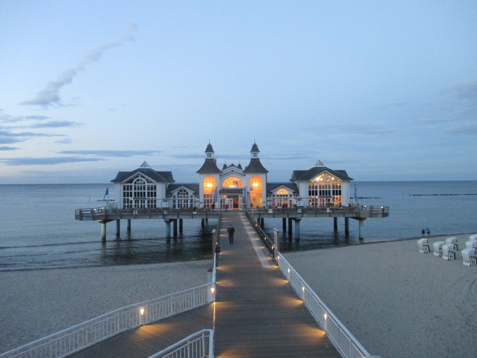 coin. J’ai repéré un mexicain bien noté, juste en face, super. Un peu avant 19h30, j’ai pris la direction du Seebrücke pour admirer le coucher de soleil sur la mer, c’était vraiment magnifique, toutes ces jolies couleurs. Superbe. Alors que le ciel s’assombrissait de plus en plus, j’ai redescendu la rue pour aller au restaurant Desperado. J’ai pris place sur la terrasse couverte, l’atmosphère et le personnel étaient sympas, musique pop hispanique. Je me suis offert un cocktail, un délicieux pavé de rumsteak et un fondant au chocolat pas mauvais du tout. De retour à l’hôtel, j’ai un peu travaillé et je suis allée au lit tôt car le réveil devait sonner à 7h30 le lendemain.