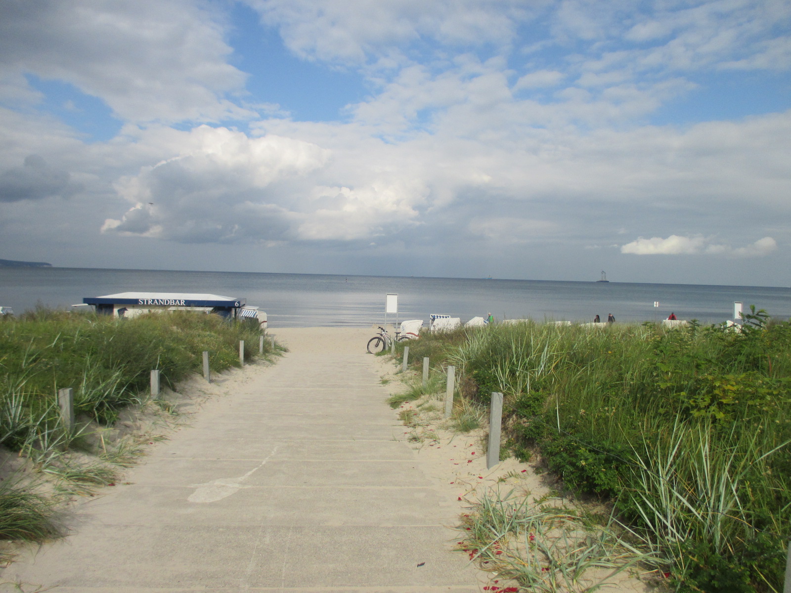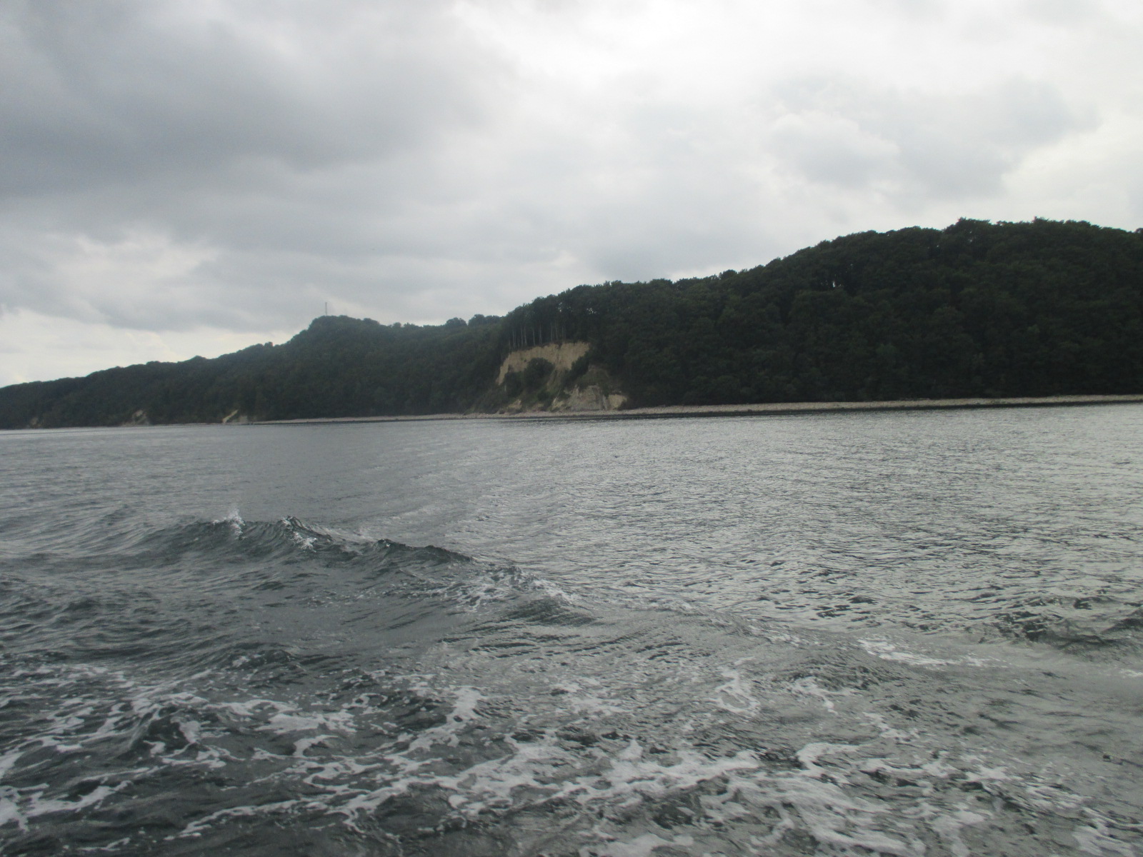 Le bateau est arrivé en retard, le trajet vers Binz était court, mais superbe le long de belles falaises escarpées. La petite ville de Binz, également station balnéaire, est toute mignonne, le soleil brillait, c’était superbe. Je me suis posée vite fait dans un restaurant pour déjeuner rapidement et me suis mise en route pour la randonnée vers Sellin, environ huit kilomètres. Après un kilomètre et demi, je suis arrivée au pied du Teufelschlucht, le ravin du diable, avec un escalier de bois