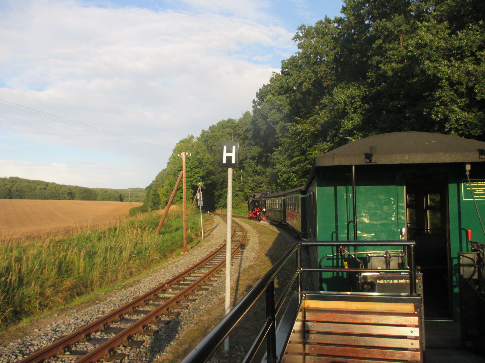 ne semblait pas passer et le tonnerre grondait à nouveau. Je me suis alors dit que randonner dans une forêt au bord d’une falaise par temps pluvieux avec l’orage qui menaçait au loin n’était peut-être pas une bonne idée, qu’il valait mieux ne pas tenter le diable. La gare du train à vapeur Rasender Roland (Roland le Fulgurant) se trouve à moins de deux kilomètres de là, alors je suis repartie dans cette direction.