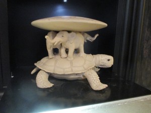 Ensuite, après un passage éclair dans une boutique pour acheter une paire de boucles d’oreille repérées deux jours avant, nous sommes allées au musée d’histoire. Très intéressant, le parcours raconte 11 000 ans d’histoire estonienne, avec des écrans interactifs. Il y a une « capsule temporelle » où l’on vous met dans une situation de deuxième guerre mondiale et vous pose des questions sur comment vous auriez agi. Mon résultat : j’aurais survécu, mais j’aurais perdu mes amis, mes choix n’étaient pas des plus intelligents. Ils ont aussi une représentation du disque-monde de Pratchett, le disque de la Terre sur des éléphants sur une tortue, j’ai trouvé ça sympa. Et il y a aussi un dragon qui se cache pour garder son trésor.