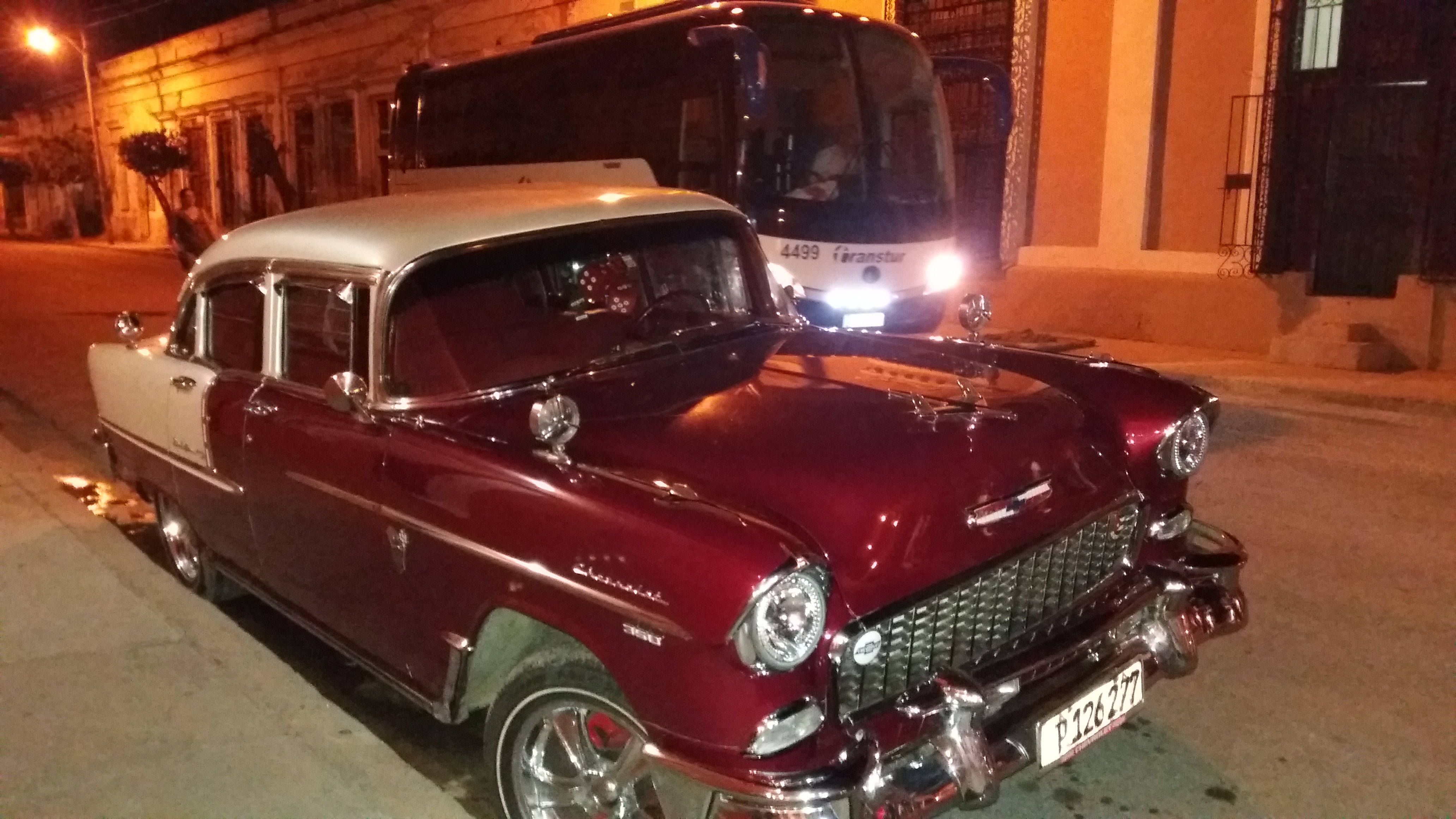 Puis nous reprenons la route, direction Cienfuego, surnommé La Perla del Sur (la Perle du Sud), grande influence française car suite à un ouragan dévastateur, elle a été reconstruite par des Louisianais au XIXe siècle. On roule en bord de mer, on s’arrête à un superbe bâtiment de style arabe sur le toit duquel il y a un bar offrant une vue magnifique. Après ce court arrêt, on nous amène à nos maisons d’hôte. Nos hôtes sont d’une grande gentillesse, ils ne parlent pas très bien anglais, du coup je fais à nouveau office d’interprète. Puis nous rejoignons le groupe pour aller dîner. Au Bouyon 1825, ils ont diverses formules avec viande ou poisson, je commande d’abord un rhum, le serveur croit que je veux un mojito. Non ! Je veux un vieux cubain svp. Il me sert un Havana Club Reserva pas mauvais du tout. Niveau repas, j’ai commandé un steak, on ne me demande même pas la cuisson. Je reçois un truc plat et trop cuit, euh et mon riz ? J’avais demandé la formule sans soupe et sans salade pour pas gâcher, mais le riz si ! Plats pas terribles, service à revoir. Ensuite, retour à la maison d’hôte car le lendemain on a encore un départ aux aurores.