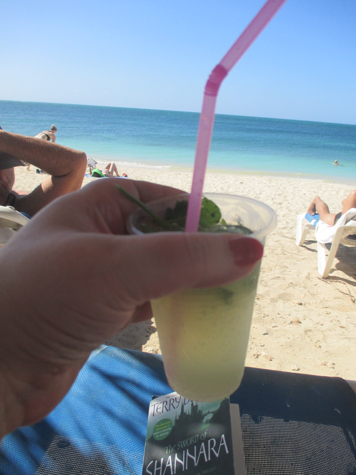 Arrivés à la plage, on a réussi à avoir des chaises longues, 2 CUC pour la journée, mais avant que le mec arrive pour encaisser, une partie était déjà dans l’eau, dont moi. La plage est superbe, l’eau turquoise, bien fraîche, un pur bonheur. Ensuite, je me pose sur la chaise longue et au bout d’un moment, le mec vient encaisser pour la chaise et propose des cocktails. Un mojito, por favor ! Il est 11h, l’heure de l’apéro, non ? Je retourne ensuite me rafraichir dans l’eau, un pur moment de bonheur, avant de rejoindre les autres, papoter, rigoler. Une superbe matinée qui prend fin avec le voyage retour dans le vent et sous le soleil.