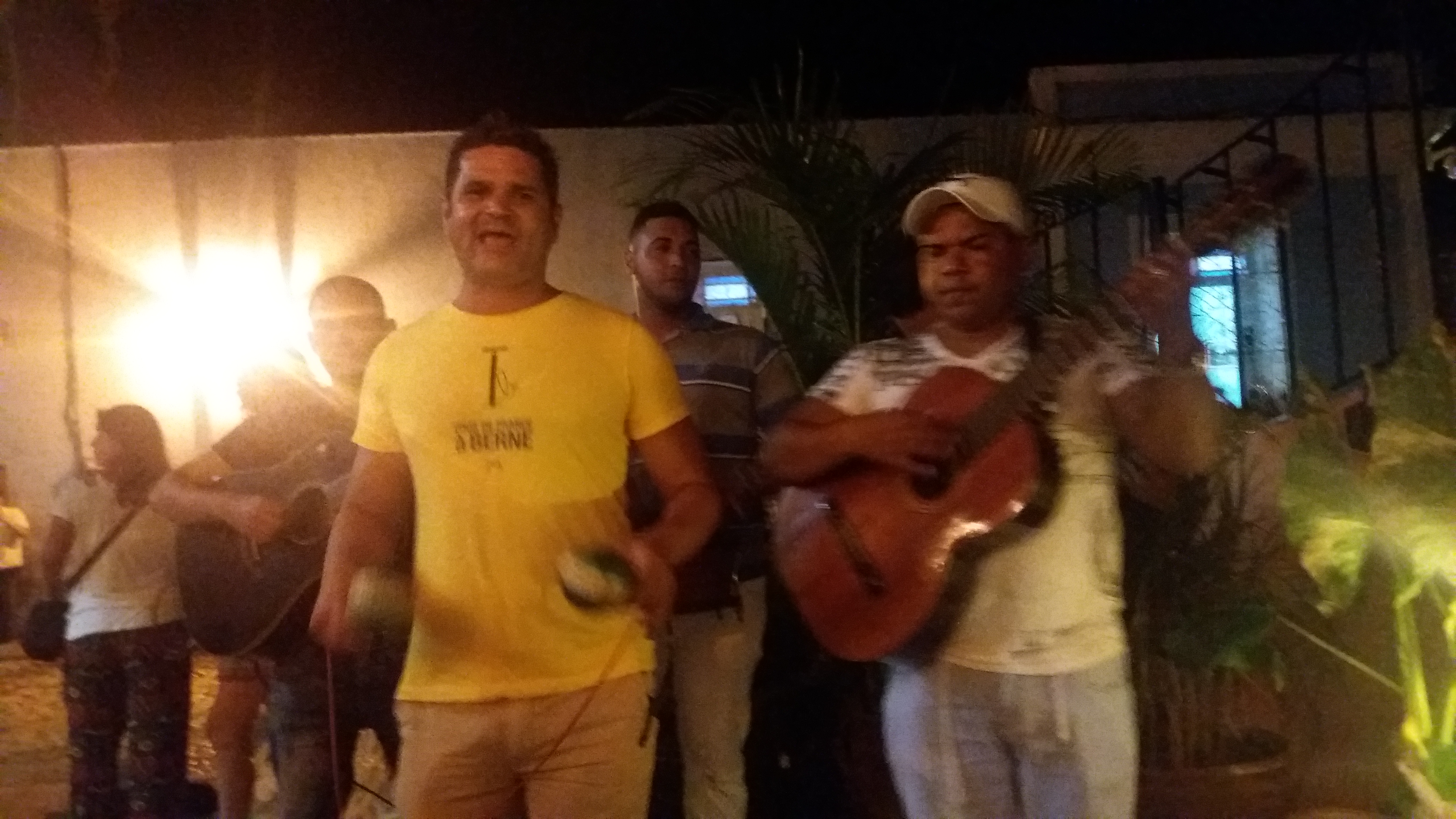 En fin d’après-midi, je retrouve Len et Ann pour aller à la Casa de la Musica où une partie du reste du groupe nous rejoint, comme nos maisons d’hôtes sont voisines, on fait le chemin ensemble. On prend donc l’apéro sur les marches près de Plaza Mayor avant d’aller chercher de quoi manger. Juste à côté des premières marches, il y a un charmant restaurant-galerie, Los Conspiradores, ceux qui ont pris des pâtes et des fruits de mer étaient ravis, ma ropa vieja, bof. Au départ, je voulais aller avec les autres au club dans une grotte, mais avec un autre départ aux aurores le lendemain, j’ai préféré aller me coucher. Au moins, j’aurais eu de la musique live pendant l’apéro et le dîner. Ce n’est pas un cliché, à Cuba, il y a toujours de la musique, salsa et autres. Un pur régal.