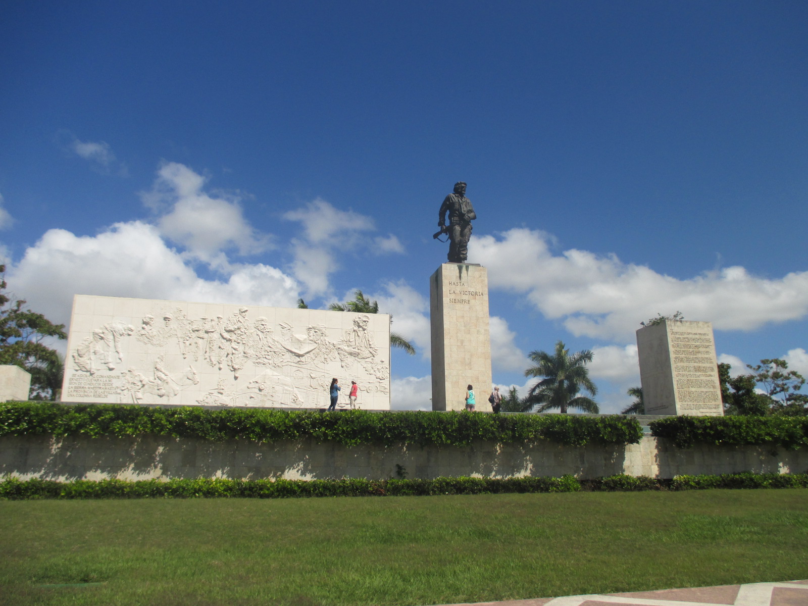 Direction Santa Clara, la ville du Che, il y a une grande statue avec un mémorial et un musée. On commence par le mémorial, on laisse nos chapeaux et sacs dans le bus, car ils ne sont pas autorisés, mais aussi les appareils photos, caméras et téléphones. Orlando les surveille jusqu’à ce que la visite soit finie et qu’on les récupère pour photographier le monument extérieur. On reprend ensuite le bus pour aller voir le train blindé, un train ciblé par les révolutionnaires. Puis re-bus pour aller déjeuner dans un hôtel en périphérie, buffet pour 15 CUC avec boisson, mais bof. Puis on amène le jeune couple en ville qui eux aussi quittent le groupe. Et nous voilà en route pour La Havane.