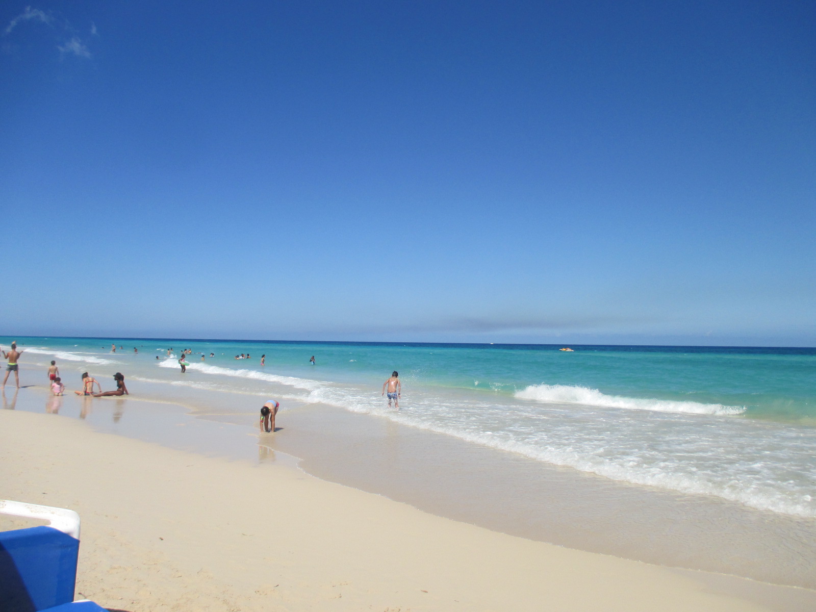 Bien sûr toute la journée, des « hola amiga », tu veux acheter mes trucs ? Tu veux un bicitaxi ? D’où tu viens ? Ça commence à devenir lourd. On n’avait pas trop ça dans les autres villes, sûrement car on était souvent en groupe, souvent avec notre guide cubain qui semblait connaître tout le monde. Là, je suis seule, oui et pas seul, hein, ça change la donne. Souvent ils vous abordent en anglais, ils sont surpris que je parle si bien espagnol, et quand je dis que je suis de France et d’Allemagne, ils sont impressionnés que je parle quatre langues, et dire qu’à une époque c’était cinq… Enfin bref, là, je vais profiter de la plage, tranquille, avec la musique des voisins.