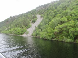 Bref, nous avons continué notre route vers, puis dans, la vallée de Glencoe, avec plusieurs arrêts photo pluvieux, c’est vraiment magique et magnifique. Pour déjeuner, une courte pause au centre des visiteurs de Glencoe avant de prendre la route vers le Loch Ness, tout en passant devant d’autres lochs. Amy nous a donné plein d’infos sur la culture et l’histoire, tout était passionnant. Arrivés à Fort Augustus, nous avons embarqué presque tout de suite sur un bateau dont Amy nous avait vendu les tickets le matin afin de nous réserver nos places. Il y avait aussi des espèces de longs zodiaques, j’aurais préféré faire ça ! Cela dit, le tour d’une heure sur le loch était bien sympa, quoiqu’humide. Mais nous n’avons pas vu Nessie. D’ailleurs, au départ, dans le message d’accueil, ils ont demandé de ne pas nourrir le monstre.