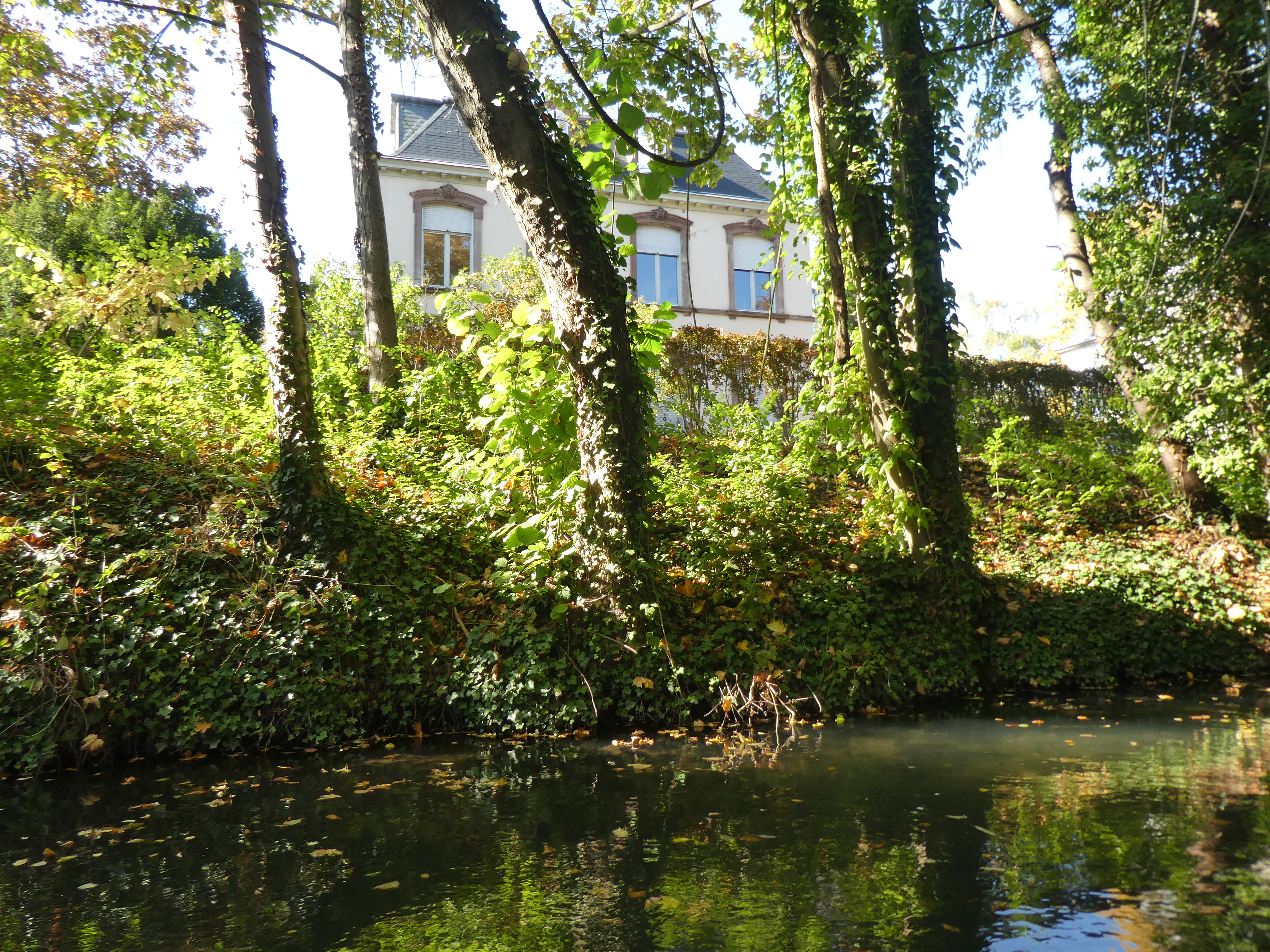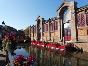 Ensuite, je me promène vers la Petite Venise, les maisons colorées, les canaux, les fleurs et les arbres aux feuilles couleur feu, c’est magnifique. Alors que je suis sur un pont au-dessus de la Lauch (poireau en alsacien et en allemand), je me dis que ça pourrait être sympa une balade en bateau. Je sais qu’il y en a en été, mais pas trop hors saison, cela dit, avec des températures de plus de vingt degrés, peut-être que… Et puis je me fais aborder par une jeune fille qui fait de la pub pour des balades en barque. Super ! Donc en route. Quand je prends mon billet, il me demande quelle langue pour les commentaires, je dis français (ben oui, je prends