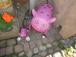 Nous sommes allées déjeuner dans un restaurant charmant, Hupsa Pfannala. En apéro, un Gewürz pour C. et un jus de raisin bio de la région (Riesling je crois) pour moi, excellent, avec une bonne tarte flambée gratinée à partager. Ensuite, la spécialité de la maison : le Hupsa Pfannala, dans un poêlon, des patates rôties, des lardons, des oignons, de la crème et un fromage alsacien fondu dessus, je n’ai pas pris au munster, mais à la tomme de chèvre, un vrai délice. C. a pris avec du Ribeaupierre au piment et a aussi beaucoup aimé. Le seul problème : c’est trop copieux. Aucune de nous n’a pu finir. Ensuite, petite balade digestive dans le village avec un arrêt pour acheter du vin pour la famille. Malheureusement pour moi, ils n’avaient plus de jus de raisin.