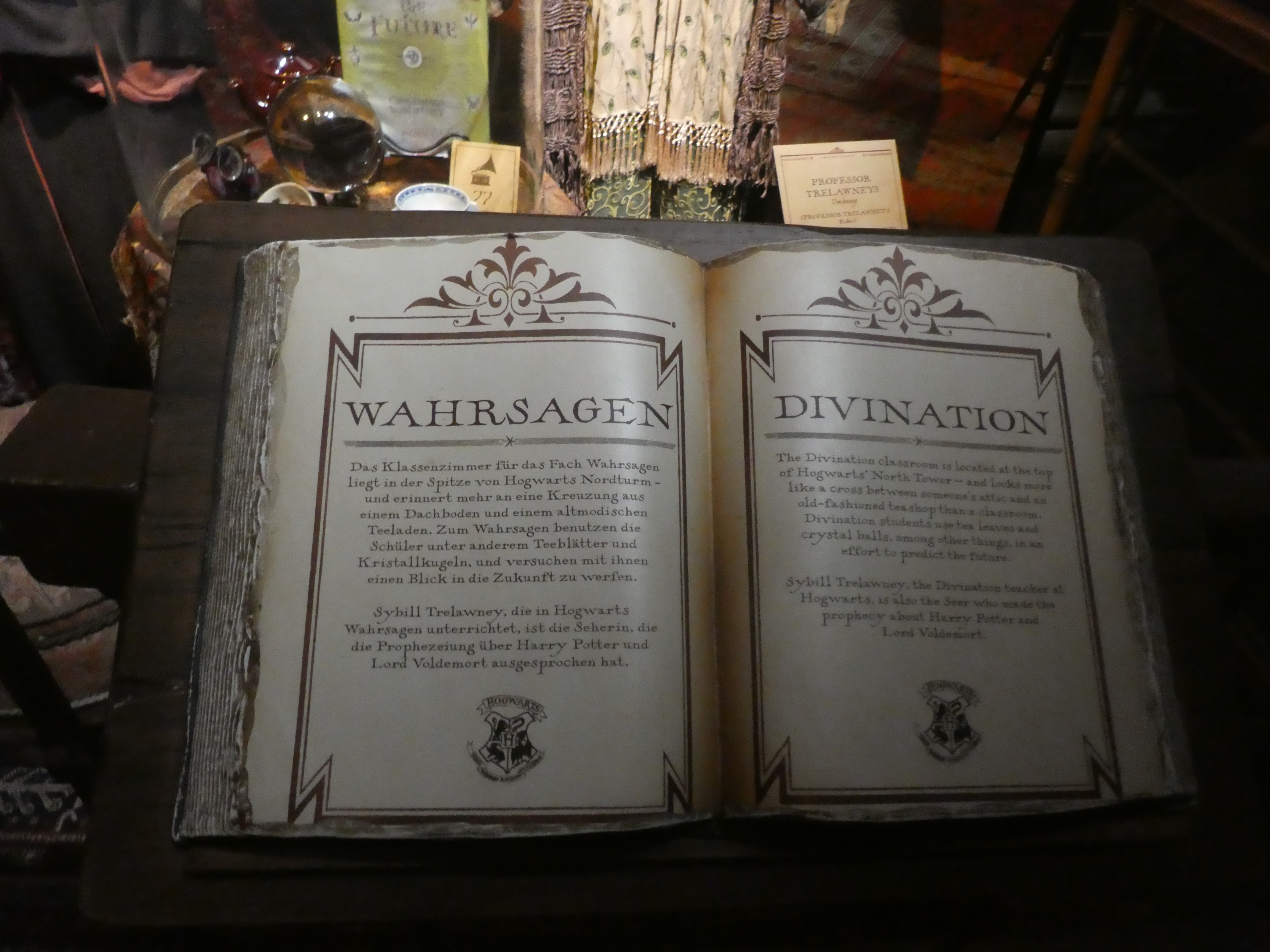 C’était vraiment sympa. Nous sommes accueillis par de charmantes sorcières pour passer sous le chapeau (pas tous) et débarquer du Hogwarts Express. J’avais peur que tout soit en allemand, non que je comprenne pas, mais j’ai tout lu et vu en anglais, tous les extraits de film diffusés sont en anglais sous-titrés en allemand, et les noms anglais originaux sont inscris sur les panneaux descriptifs. Il est également possible de louer un guide audio disponible en plusieurs langues pour des histoires et anecdotes de tournage. Très intéressant. Nous l’avons toutes les deux pris en anglais, mais celui de mon amie ne fonctionnait pas, et une fois dans l’expo elle a juste pu en avoir un en allemand, ils doublent les interviews en allemand par-dessus l’anglais qu’on peut encore entendre, pas top. Mais bon…