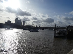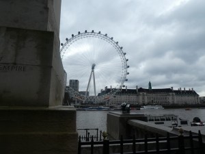 Dimanche matin, je n’ai pas trop traîné et j’ai pris la direction du Shard pour le Doctor Who Tour. En arrivant au point de rendez-vous, je suis passée devant l’entrée pour la plateforme d’observation du bâtiment, j’avais pas le temps, mais j’ai quand-même demandé le prix… 32 GBP. J’étais pas sûre d’avoir bien entendu, mais je viens de vérifier en ligne, c’est bien ça. Un peu abusé je trouve. Enfin bref, j’ai attendu et un monsieur est venu me voir et m’a demandé si j’attendais aussi pour le Doctor Who Tour, oui, c’est vrai qu’avec le sac TARDIS… Puis le guide est arrivé. Michael, comme la veille. Cette fois, le groupe était plus petit, c’est plus sympa. Comme on était au Shard, on a bien sûr commencé par l’épisode The Bells of St John quand le 11e Doctor roule sur la façade à moto. On est passés devant de nombreux célèbres monuments de Londres, le Globe, la Cathédrale St Paul, Trafalgar Square. Il a parlé autant des classiques que des nouveaux, il faut dire que les nouveaux sont surtout tournés à Cardiff, ils viennent à Londres quand ils ont besoin de lieux distinctifs et dans la dernière saison, y’a même pas d’épisode à Londres. Ce fut une belle et intéressante balade qui s’est terminée le long de la Tamise, près du Parlement, face au London Eye.