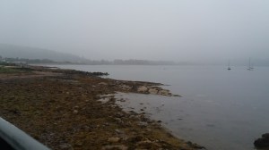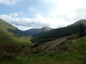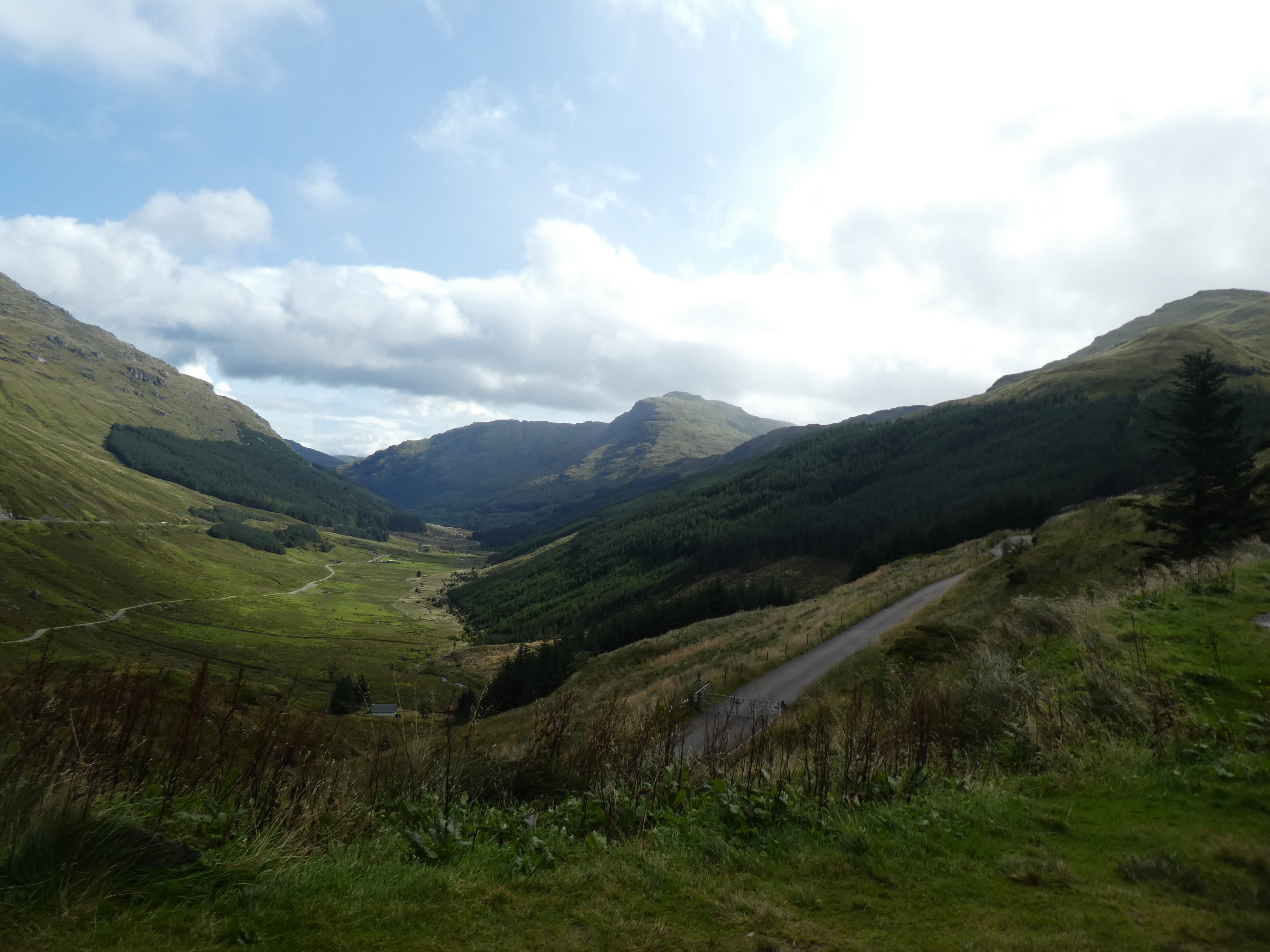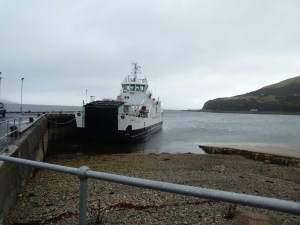 Hier, après un rapide petit-déjeuner, nous nous sommes mis en route pour la tournée des hôtels afin de récupérer le groupe, puis nous avons repris la route des Highlands, nous avons salué Fred le phoque une dernière fois et le matin à marée basse avec moins d’eau autour de son rocher, c’est plus flagrant. La pluie faisait toujours des siennes, Pete a laissé descendre une partie du groupe au château de Lochranza, à quelques minutes à pied du terminal pour le ferry, vu le temps, mon état de forme moyen et le fait que j’avais déjà vu le château depuis plusieurs points de vue la veille, j’ai passé. Une fois le bus dans la file d’attente, nous sommes allés nous poser au terminal, pour l’embarquement, nous devions remonter à bord du minibus et le soleil a commencé à faire quelques apparitions timides de quelques minutes. Une fois à bord du petit ferry, je suis montée quelques minutes sur le pont extérieur afin de profiter de la vue et d’un peu d’air frais, mais je suis vite retournée au chaud, j’ai refait une petite sortie plus tard, assez courte. Le traversée n’a duré qu’une demi-heure et nous sommes donc remontés dans le bus pour débarquer dans le sud des Highlands de la côte ouest et nous avons roulé sur de jolies et étroites routes dans de beaux paysages, au bord de la mer ou de lochs.