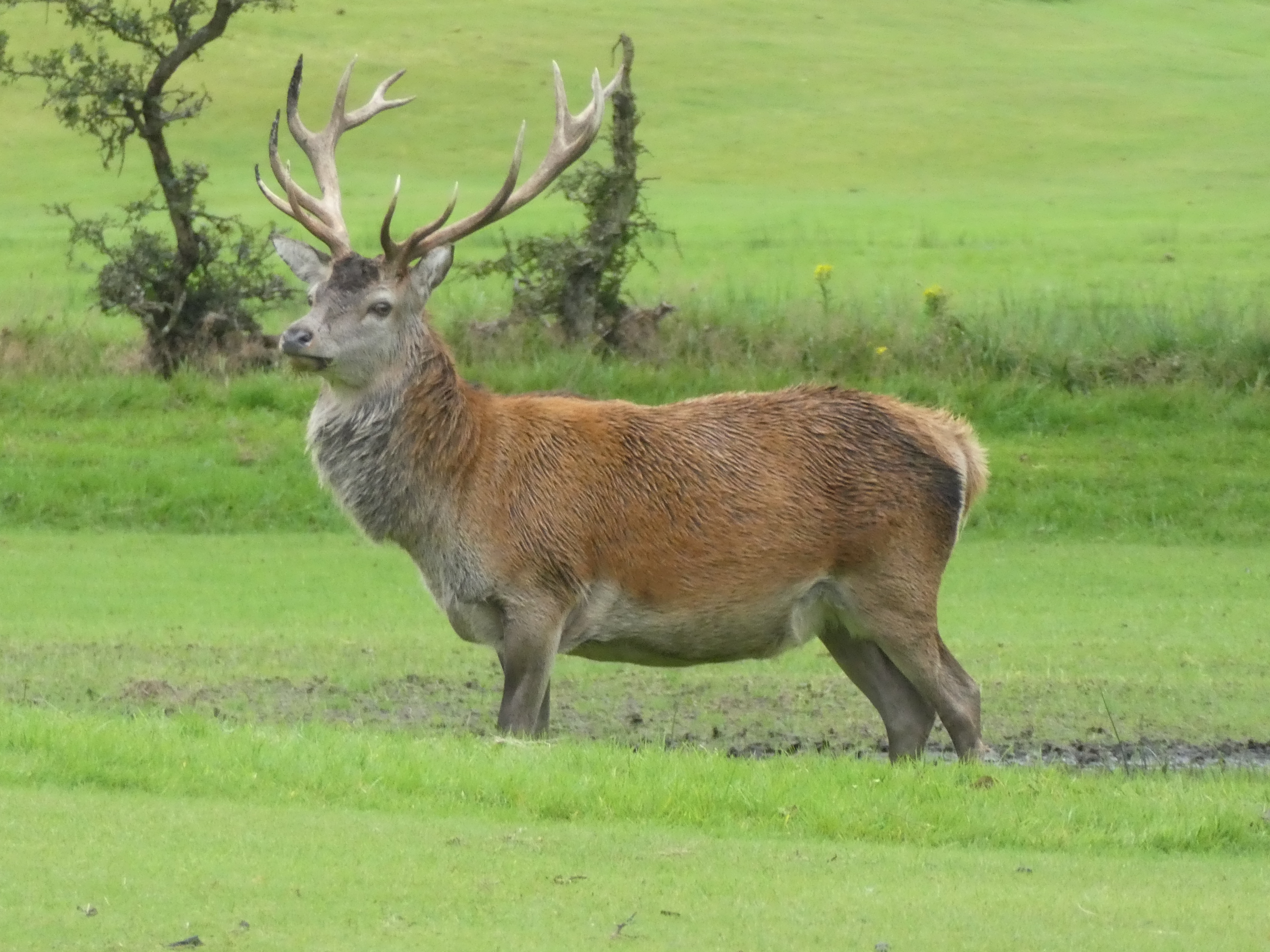 Nous sommes ensuite retournés à la distillerie, ensuite nous nous sommes arrêtés près du golf pour observer les cerfs rouges qui broutaient sur le green, puis un autre arrêt plus loin face au château.