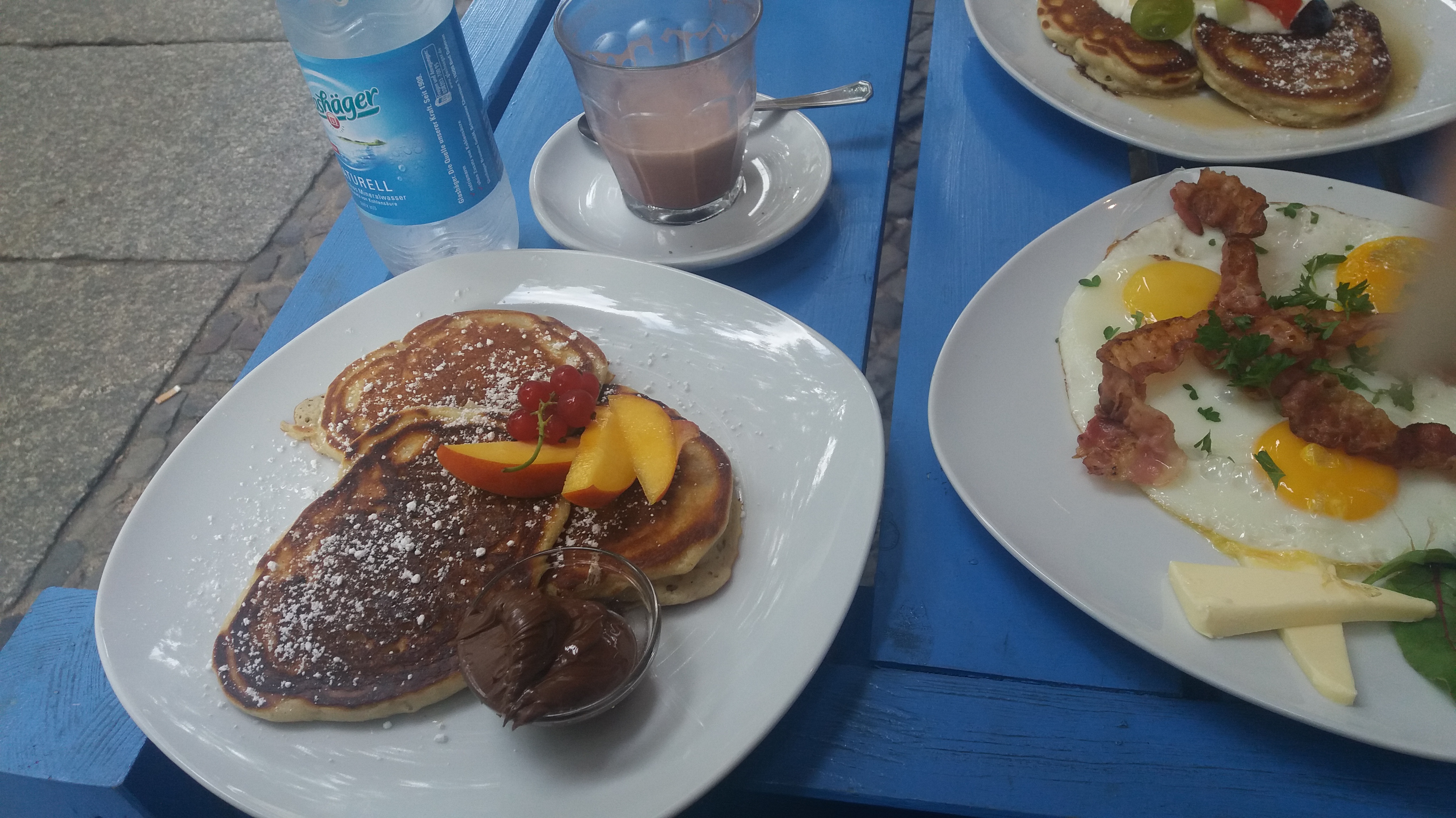 Découvert au hasard à Prenzlauer Berg en se promenant dans le quartier, nous avons déjeuné sur la petite terrasse du café dans une rue calme. De bons pancakes, des plats d’œufs en tout genre, des pâtisseries et des viennoiseries, un large choix s’offre à vous. Prix corrects, service sympa, plats pas mauvais du tout.