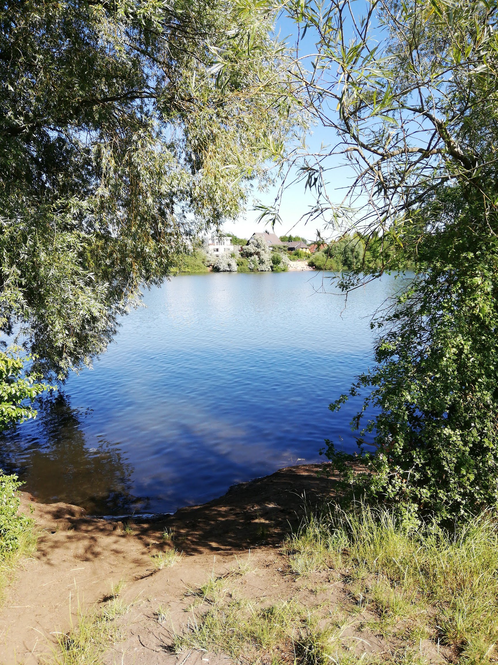 Donc me voilà partie pour une petite balade d’un peu moins de deux kilomètres au départ d’Elsterwerdaer Platz et sa station de métro du U5. Entre les divers bâtiments du centre commercial et des centres médicaux, station dans le dos, je me dirige vers le parc Stadtgarten Biesdorf, que je longe en empruntant le Budapester Weg, on a maintenant presque l’impression d’être dans un village. Arrivée au bout du parc, je prends à gauche sur Grabbensprung, puis à droite sur Wilhelmbrücke Strasse, un coin qui fait vraiment campagne avec l’absence de trottoir. J’arrive alors sur le domaine du Biesdorfer Baggersee, Baggersee désigne un lac artificiel et Biesdorfer vient de Biesdorf, le quartier.