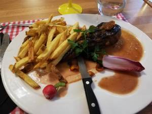 La veille de mon retour, je suis allée déjeuner avec des amis à Thionville, dans le centre, dans la cour du Mersch, le P’tit Marcel vous propose sa carte sur ardoise, un régal pour les amateurs de viande, peut-être moins adapté aux végétariens. La carte varie, ce jour-là j’ai opté pour un bon filet de canard avec frites maison, un délice. Toute la tablée était ravie, c’est un endroit très sympathique, le service est au top et les prix raisonnables. Le personnel est aimable et vraiment très accueillant. Attention, il est conseillé de réserver, les places sont chères chez Marcel !
