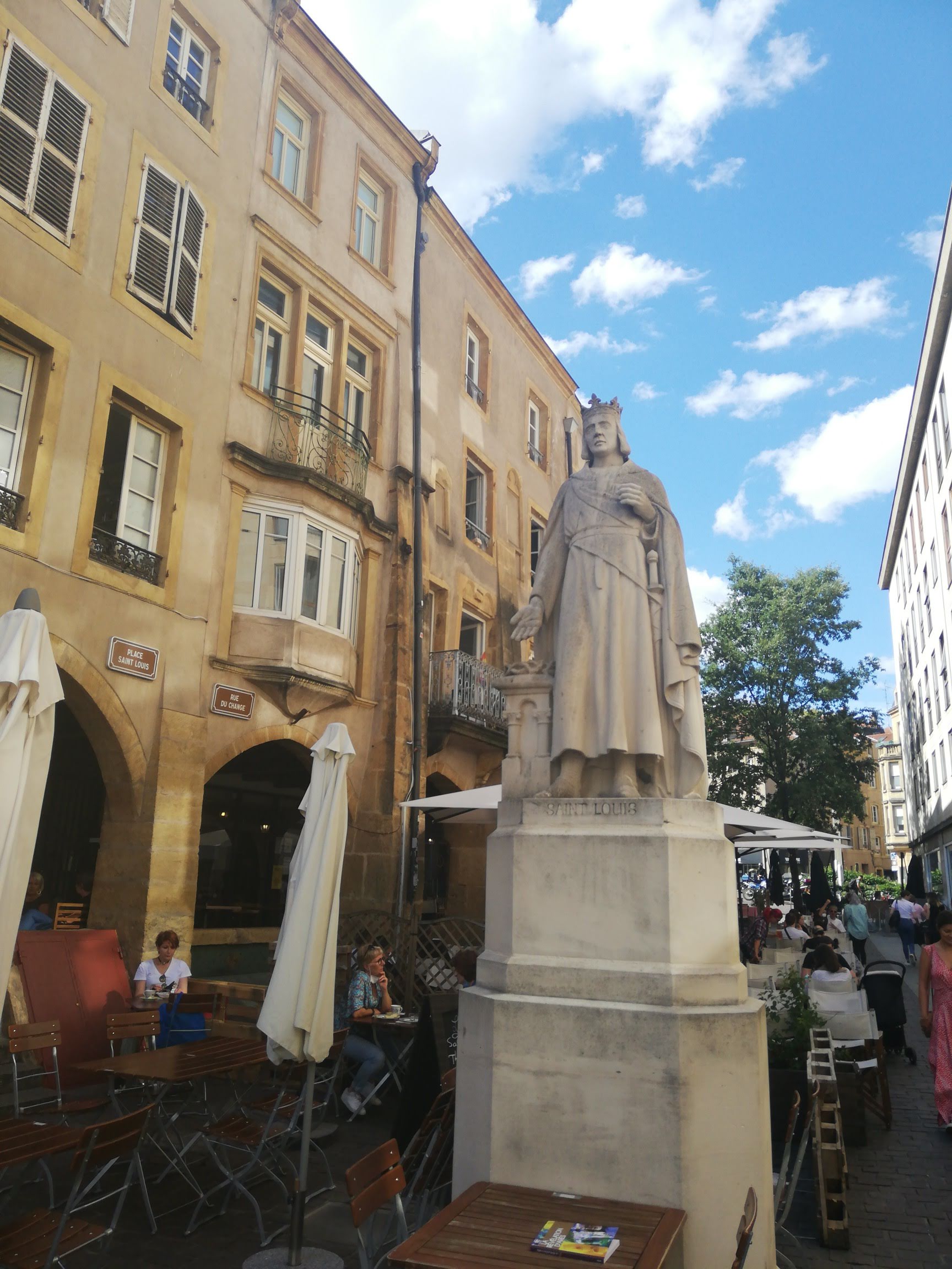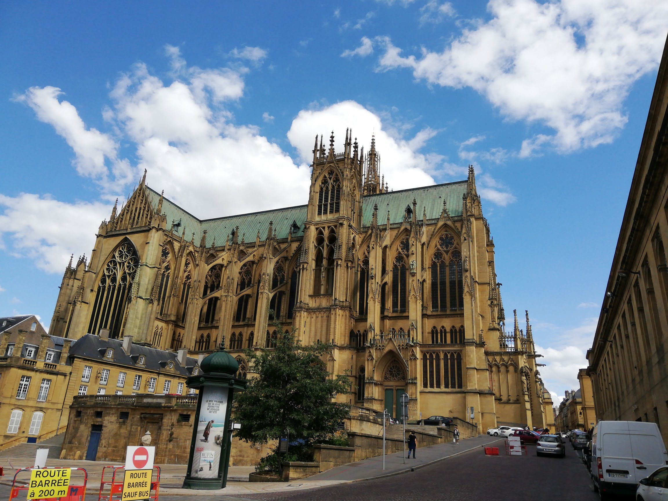 Suite à cela, nous avons pris le petit pont menant à la rue des Roches et sommes remontées vers la place de Chambre en contrebas de la magnifique cathédrale Saint-Étienne, avec ses pierres de Jaumont, jaunes, elle brille sous le soleil. Puis nous avons remonté la rue du Faisan, une vraie rue gourmande avec des restaurants à la pelle, quelques-uns étant vraiment bons voir excellents. Ensuite, nous avons retrouvé la foule en remontant les rues de la Pierre-Hardie et du Palais, ici, les commerces commencent à se multiplier, arrivées rue des Clercs (une des grosses rues commerçantes), nous avons continué tout droit sur la rue du Petit-Paris qui s’achève sur la rue Serpenoise (l’autre grosse rue commerçante du centre) et devient la rue de la Tête-d’Or en longeant le centre commercial Saint-Jacques.