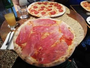 L’Osteria, le pays des pizzas géantes… C’est une chaîne internationale et nous sommes allés à celui de Memhardstrasse, près d’Alexanderplatz. Personne n’était préparé à la taille des pizzas avant de commander, mais si nous avions su, nous aurions commandé une pour deux, elles sont vraiment énormes ! Elles sont très bonnes, mais j’ai eu du mal à finir la mienne, si je n’avais pas pris l’option jambon de parme, j’aurais sûrement fini le reste au déjeuner le lendemain, mais du jambon de parme chauffé au four, bah. Les portions des plats de pâtes sont aussi assez conséquentes, autant dire que nous n’avons pas pris de dessert. Une bonne adresse à prix abordable pour les grosses faims, ou pour partager.