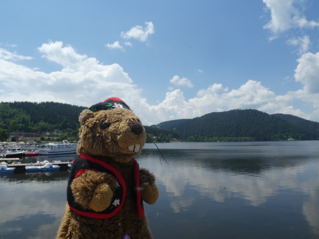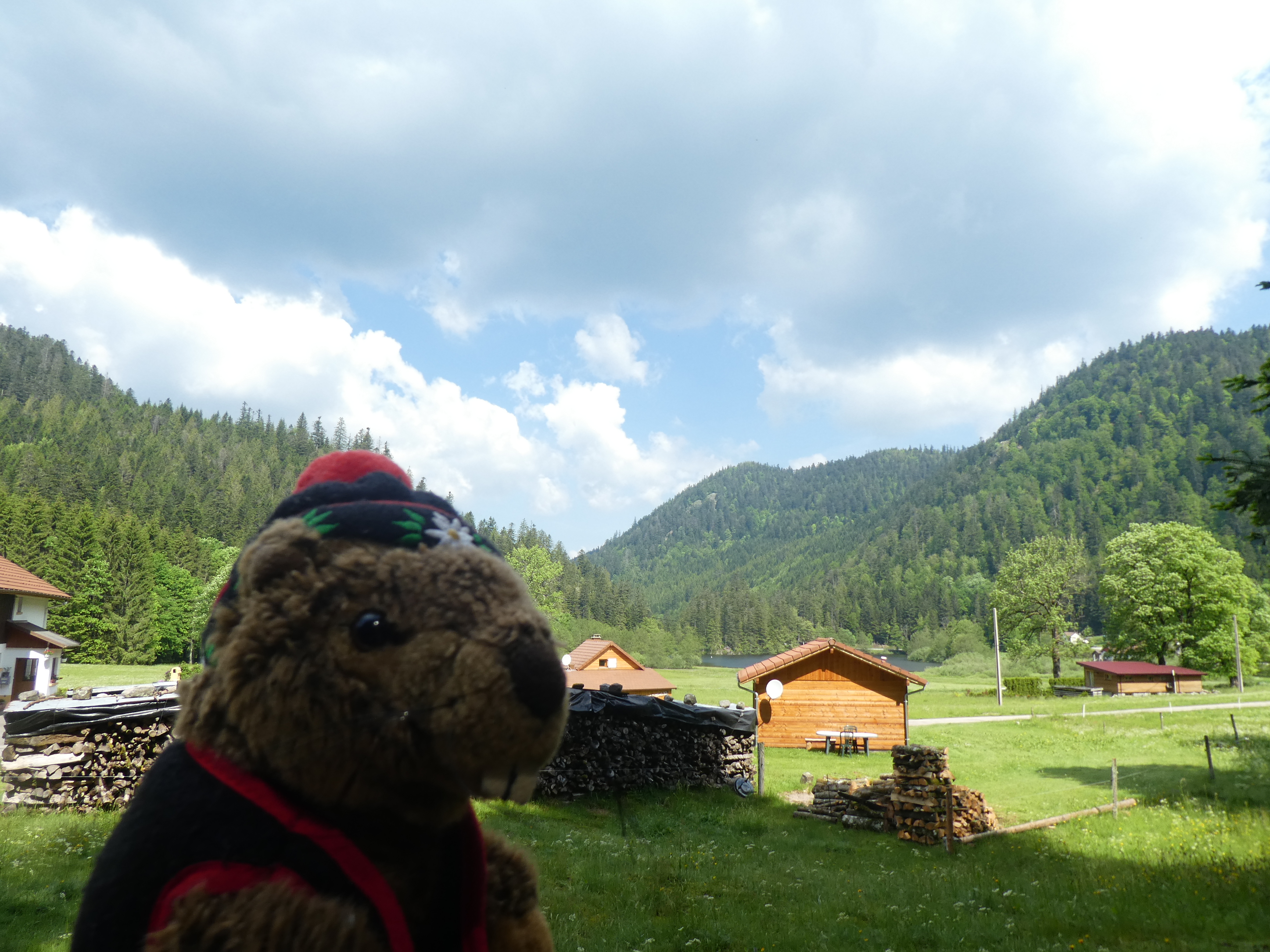 Elle est jolie et gâtée la marmotte dans les Vosges, les photos sont belles.