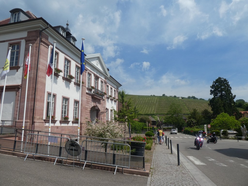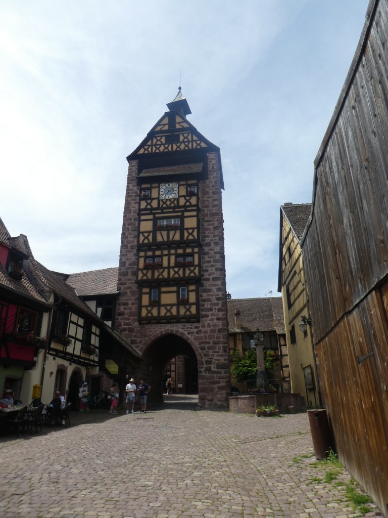 Le premier arrêt était à Riquewihr, un pittoresque petit village sur la route des vins d’Alsace, avec les vignes en arrière-plan, c’est vraiment magnifique. Il était presque midi, nous avons commencé à nous balader dans le centre piéton en faisant du repérage pour les restaurants. Outre les mille et une caves à vin, il y a pas mal de boutiques, pas toutes des pièges à touristes, et j’ai craqué pour une paire de boucles d’oreille, classique. Le soleil cognait bien et le thermomètre flirtait déjà avec les 30°C. Pour déjeuner, nous sommes allés à L’Arbalétrier, la salle est dans un caveau, nous étions bien au frais. Une très belle adresse, les plats faits maison étaient très bons, beaucoup de spécialités locales, une déco originale et une serveuse super sympa, dans une ambiance familiale. Et la note n’était pas trop salée.