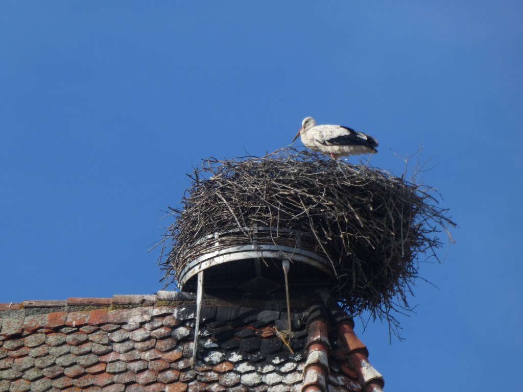 Hier dimanche, après une bonne nuit bercée par le son de la climatisation, j’ai pris un bon petit-déjeuner puis je suis allée profiter de l’espace bien-être. Le jacuzzi ne fonctionnait pas trop, mais j’ai bien pu nager. J’ai eu la piscine pour moi toute seule pendant près d’une heure. Ensuite, je suis allée rejoindre la famille chez Les Alsaciens. Une belle journée tranquille. Puis en fin de soirée, je suis rentrée à l’hôtel au son des cigognes qui caquetaient. Ah ben c’est l’Alsace, d’ailleurs sur le chemin entre l’hôtel et Les Alsaciens je passais devant une vieille bâtisse sur le toit de laquelle il y a un beau nid de cigognes.