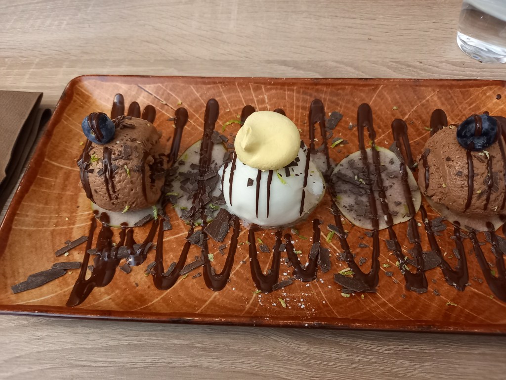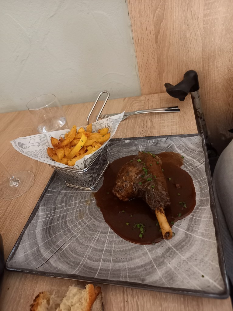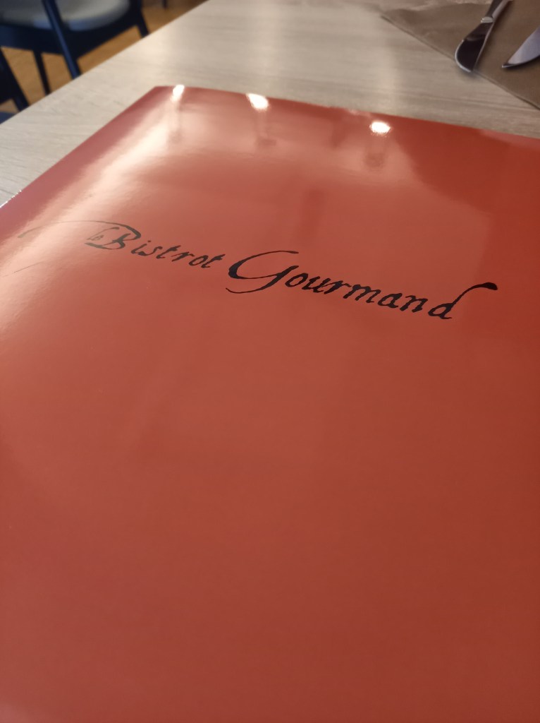 Nous avons pris place au restaurant Le Bistrot Gourmand, mes parents y étaient déjà allés, notamment sur la jolie terrasse avec une bucolique petite fontaine. Cela semble être un cadre des plus agréables, il faisait assez frais, même si la terrasse est chauffée, et nous avons préféré prendre place à l’intérieur.