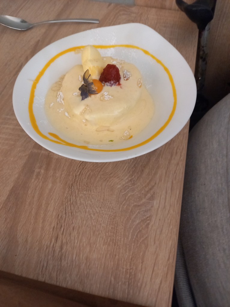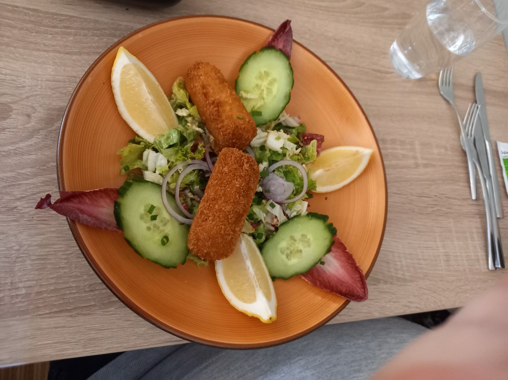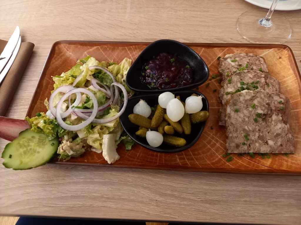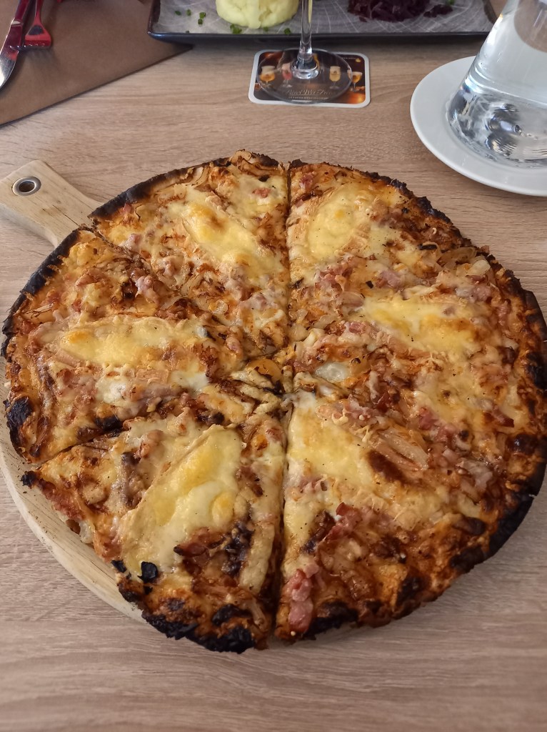 L’accueil est très sympathique, le personnel est avenant, le cadre est sobre, on s’y sent bien. La carte est très alléchante, notamment des spécialités locales et françaises, des produits de la région (ce qui inclut une partie de la Moselle française), des vins aussi locaux et bien d’autres. En entrée j’ai pris une excellente terrine de campagne venue tout droit de l’auberge de la Klauss non loin de là, j’ai aussi goûté les croquettes de fromage, pas mal du tout, et même si je n’ai pas jugé personnellement je sais de source sûre que les calamars frits étaient très bons. Ensuite, pour moi ce fût une tarte flambée gratinée au munster, superbe, les autres convives ont aimé le boudin et la souris d’agneau et m’ont dit que le bœuf est aussi très bon ici. En dessert, j’ai pris une bonne mousse au chocolat bien légère, avec un excellent sorbet citron (c’est normalement servi avec de la poire mais j’aime vraiment pas ça la poire) et on me souffle dans l’oreillette que les œufs à la neige sont aussi délicieux.