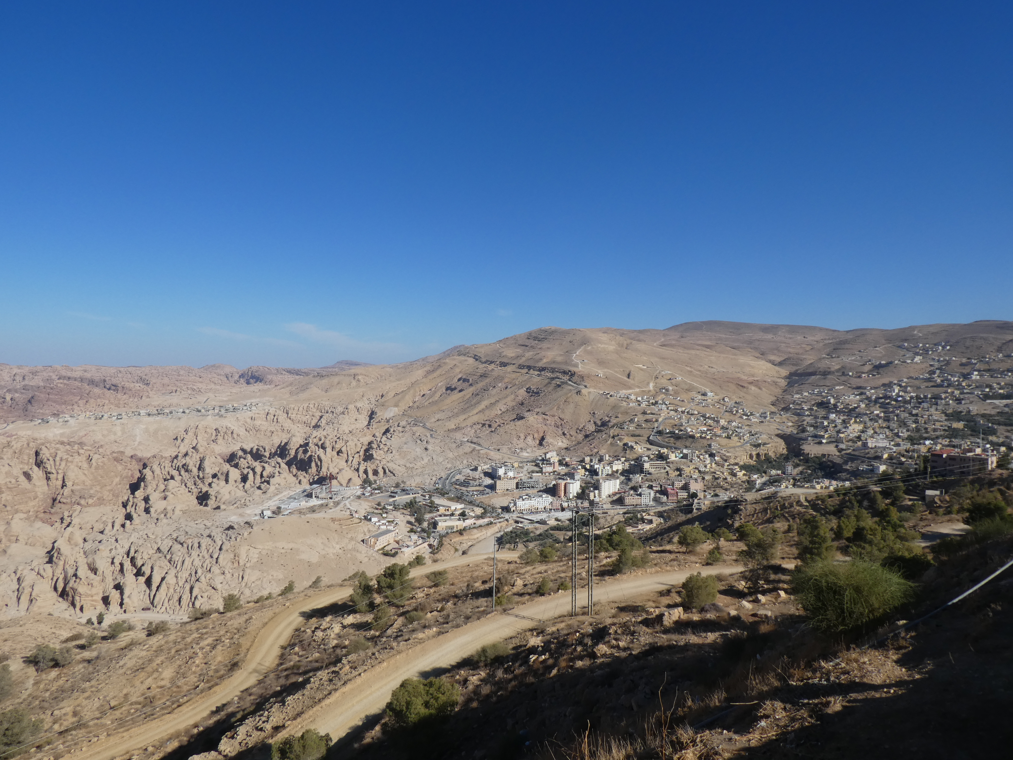 Nous avons ensuite repris la route pour nous rapprocher de Wadi Rum. On est alors à environ 30 km de la frontière avec l’Arabie Saoudite et y’a du trafic de pétrole/essence du coup. Le guide nous disait aussi qu’ici dans le désert, tout le monde conduit, avec ou sans permis, des voitures avec ou sans immatriculation, dans le bon sens ou pas, c’est-à-dire du bon côté de la route.