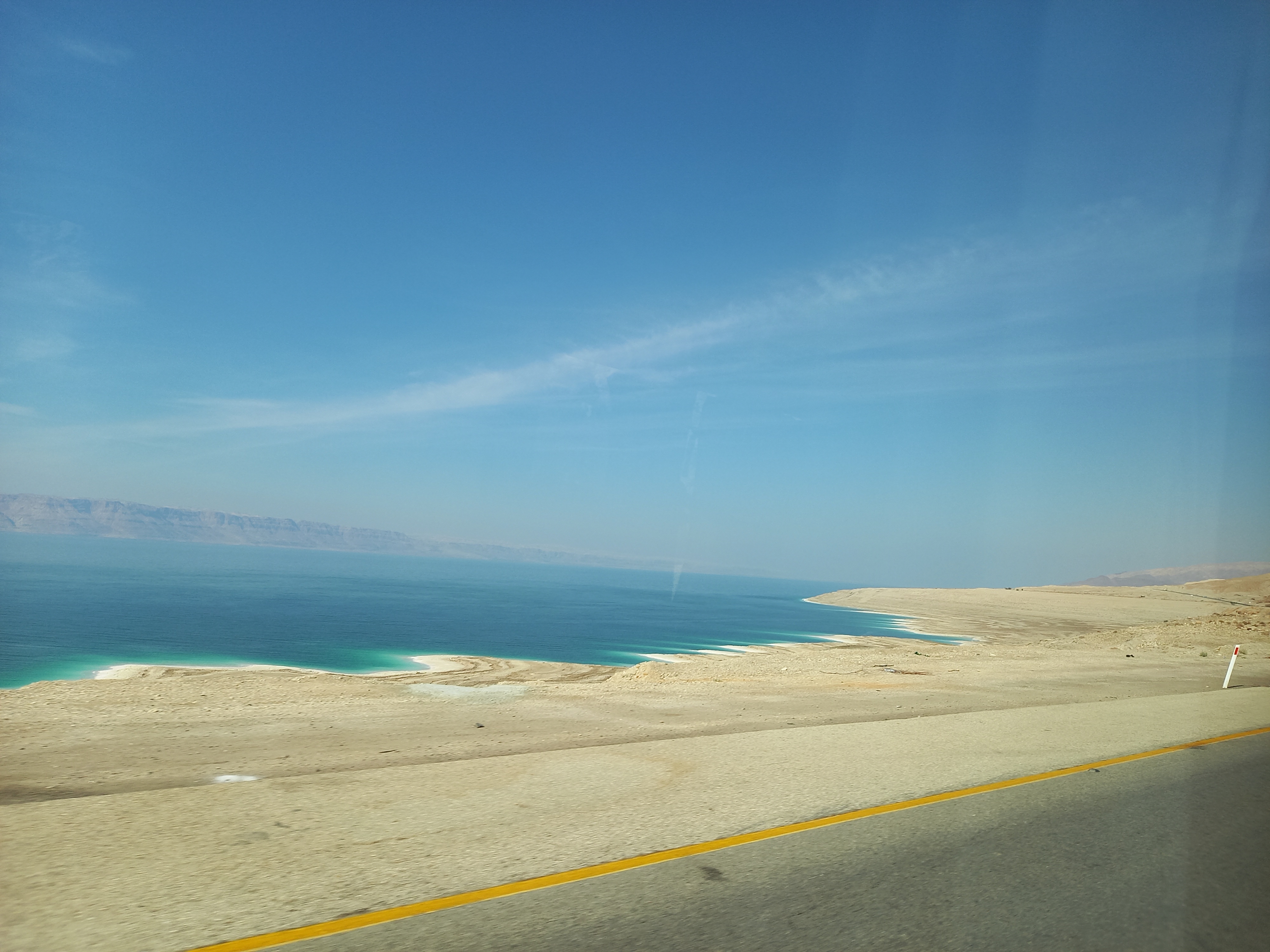 Aujourd’hui, on a fait beaucoup de route. On est repartis d’Aqaba en prenant la route de la mer Morte, longeant la frontière avec Israël. Une fois qu’on arrive sur la côte, le paysage est magnifique, avec les falaises qui se jettent dans la mer. On a d’ailleurs fait un arrêt photo. Un peu plus tard, on s’est arrêtés dans un village proche d’Amman pour déjeuner à l’association Numeira, qui achète des produits de l’agriculture à des prix justes pour les producteurs. C’est une association soutenue par l’association canadienne Planeterra, partenaire de GAdventures, promouvant le tourisme durable avec un soutien aux communautés locales.