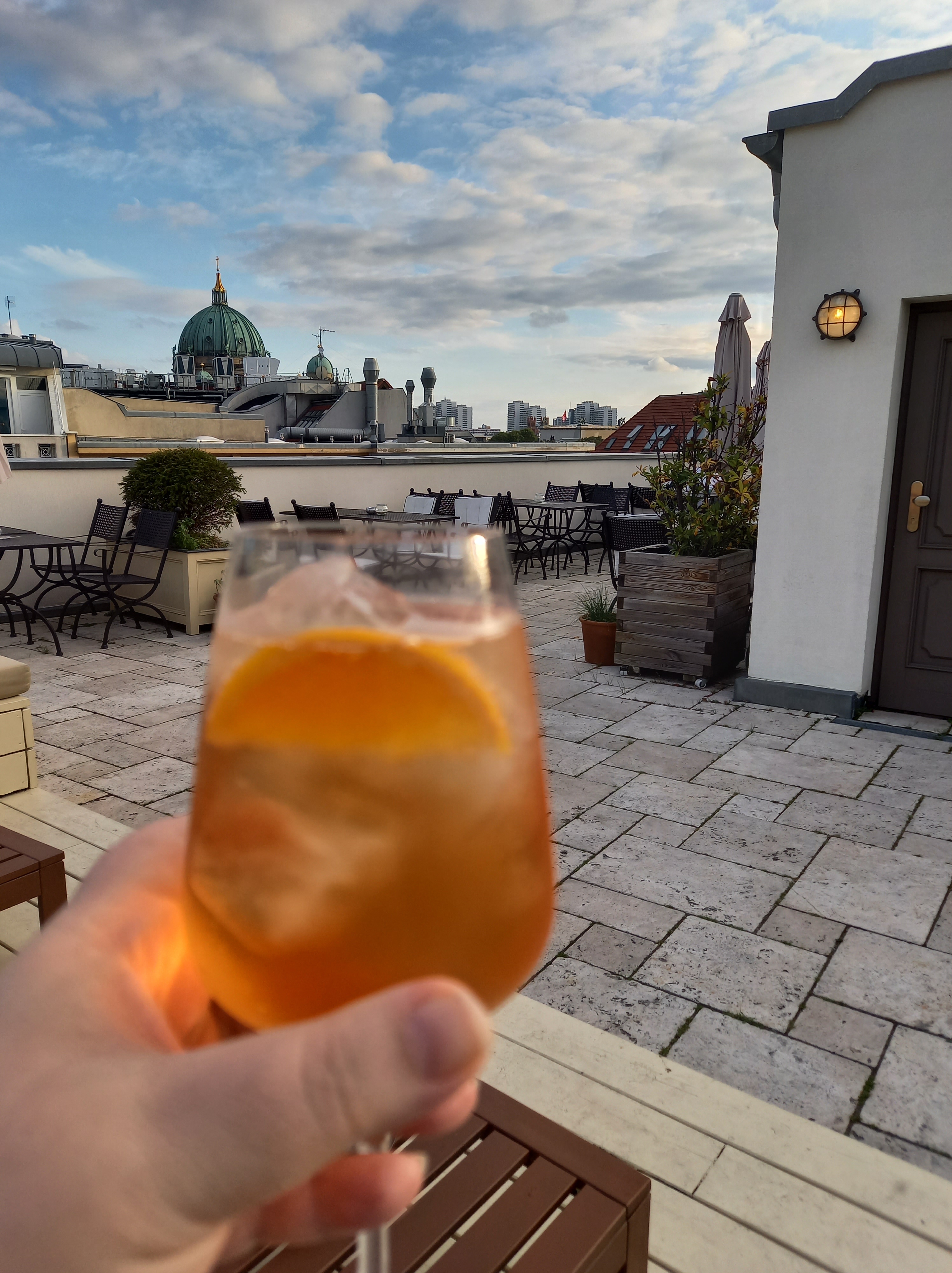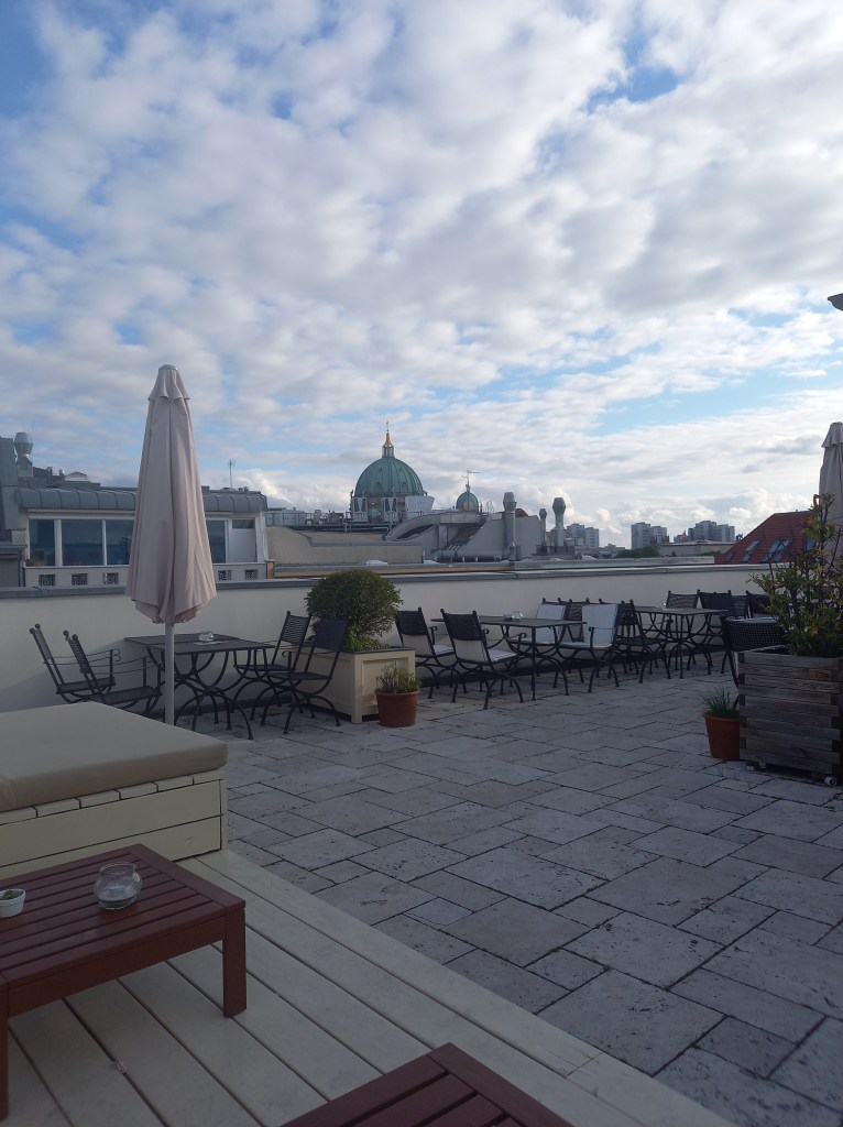 Sur Monbijouplatz, près du parc Monbijou et derrière Hackescher Markt, se trouve un joli petit hôtel qui dispose d’un bar sur son toit. De là, on a une très belle vue sur le cœur de la ville, notamment la tour de la TV et la cathédrale. Le service y est chaleureux et les cocktails bien dosés et très bons. On est également bien conseillé, lors de notre visite j’ai pas eu de chance car ils étaient à court de certains produits, mais selon mon choix de départ et avec quelques questions, le barman a pu me suggérer autre chose et c’était excellent ! Quand les beaux jours reviendront j’y retournerai certainement.