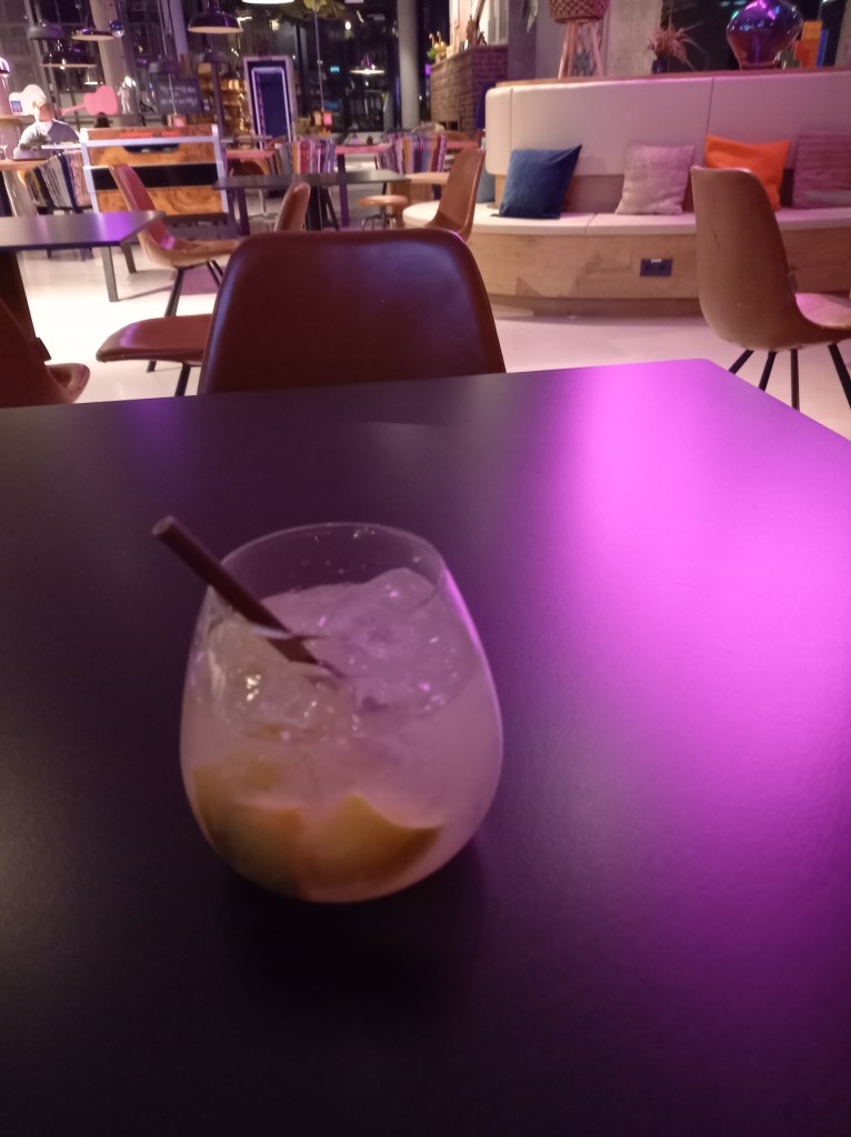 Donc, j’ai un peu traîné au lit, bouquin, livre audio, musique. Un peu plus tard, je verrai si je tente un resto ou si je vais prendre quelque chose au supermarché, puis je retournerai peut-être au bar de l’hôtel.