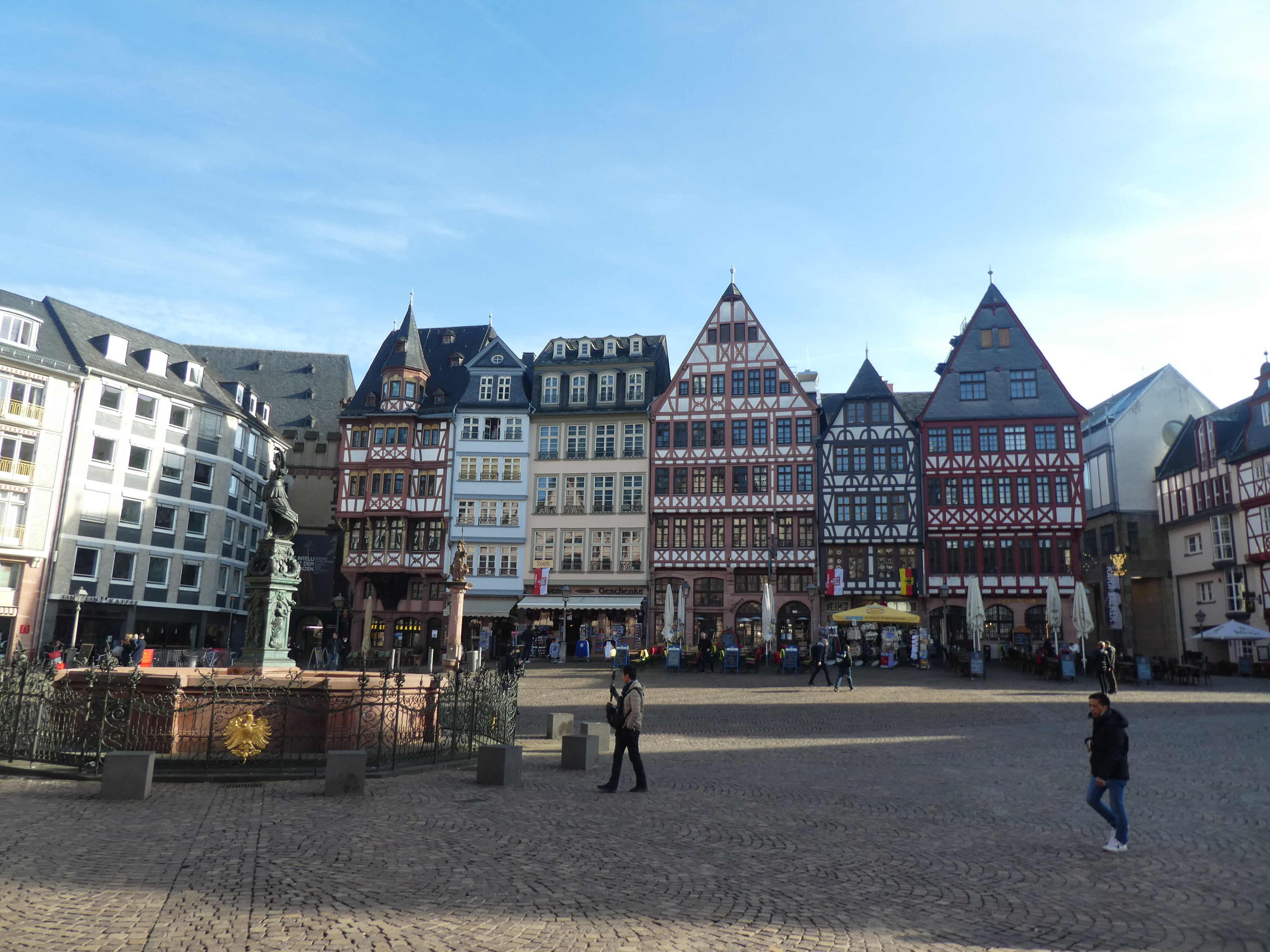 Sur ce, j’ai voulu prendre la direction de la vieille ville et du Römer, la mairie. Je commence donc à suivre les panneaux. À un moment, j’ai été à deux doigts d’éclater de rire et je n’ai pas pu m’empêcher de sourire. Je rentre dans une grande rue piétonne et là… la Marseillaise ! Nan, mais quelle coïncidence quoi ! Je me suis donc un peu arrêtée et bien sûr j’ai donné un peu au musicien.