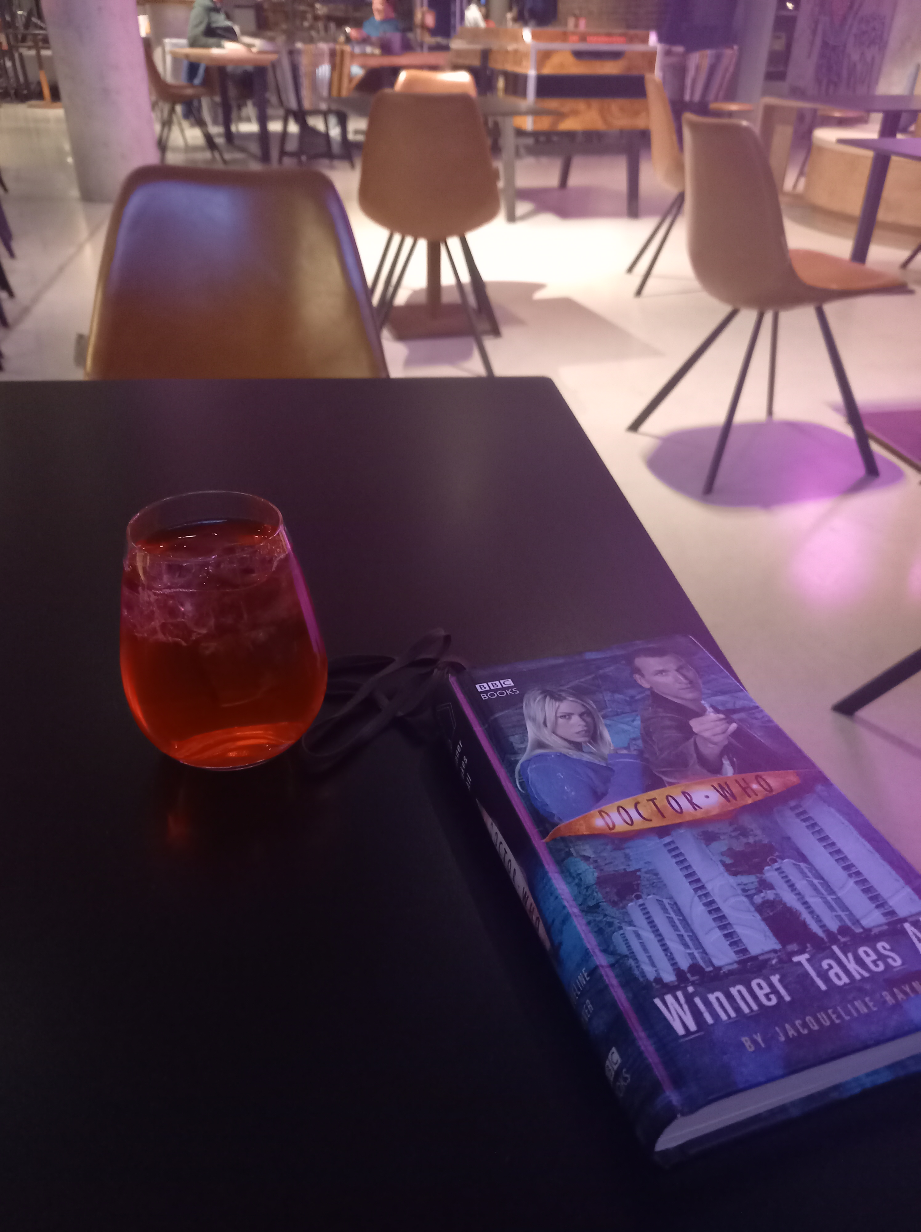 De retour à l’hôtel, je suis allée un peu au bar. J’avais encore mon bon pour une boisson de bienvenue. J’ai pris le cocktail maison, gin, jus de cerise, thé glacé à je sais plus quoi et d’autres trucs. C’était pas mauvais. Y’a une longue table au bar, elle était occupée à un bout, j’ai hésité à me mettre à l’autre bout, mais finalement, je me suis assise ailleurs et j’ai bouquiné. Puis je suis remontée et je me suis couchée pas trop tard.