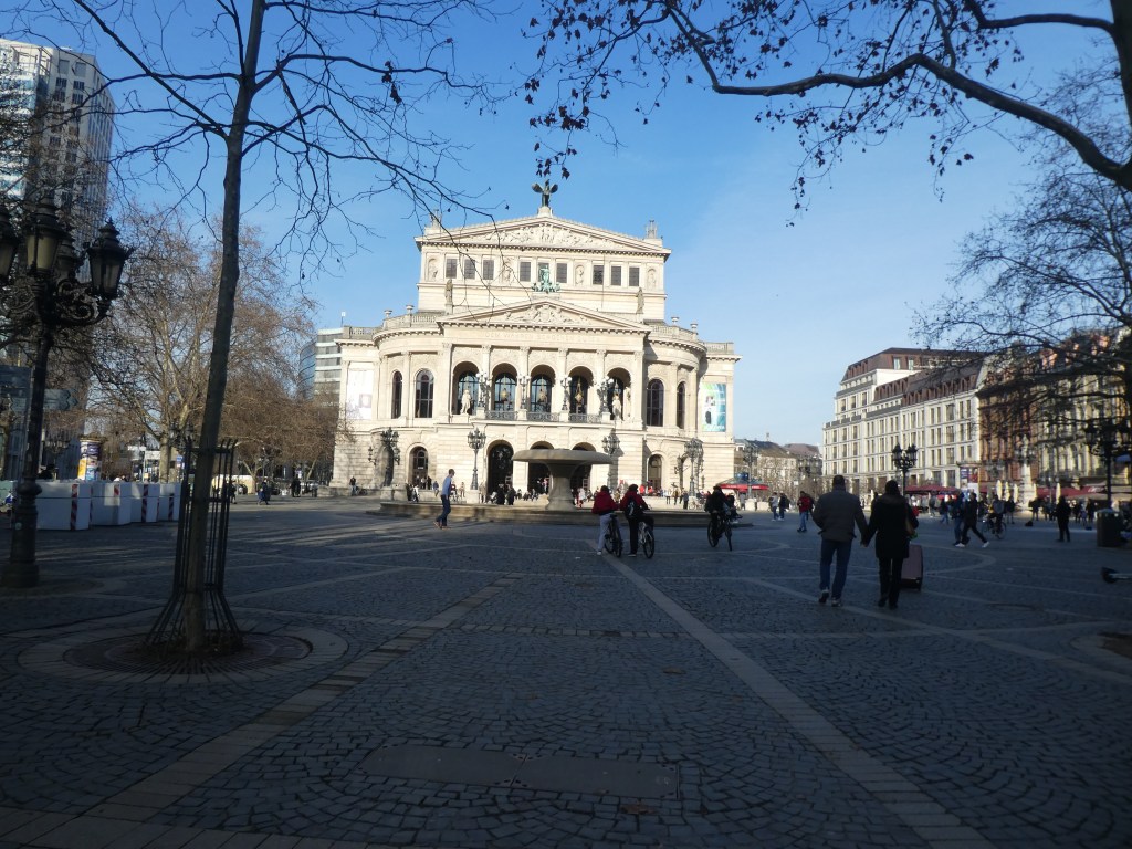 J’ai ensuite voulu aller au bar-restaurant, mais c’était fermé. Puis comme ma jambe exprimait son mécontentement, je me suis juste un peu promenée dans le coin, jusqu’à l’opéra, puis j’ai arpenté, direction Hauptwache, la Fressgass, une rue gourmande (comme à Nancy ^^). C’est pas le vrai nom de la rue, plus le surnom, qui veut littéralement dire rue de la bouffe. Et là, je suis au bar de l’hôtel, je squatte avec un bon p’tit cocktail Moxy que le réceptionniste a pas voulu que je paie. Sous peu, je récupérerai mes bagages et je prendrai le chemin de la gare pour rentrer à la maison.