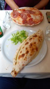 Pour dîner, nous avions repéré un resto sympa à l’angle de l’hôtel, mais il était fermé. Quelques mètres plus loin, nous avons pris place au Strada Romana, dans la petite cahute faisant office de terrasse couverte. Encore une belle adresse. Personnel sympathique. En entrée, j’ai pris une assiette de jambon fumé italien avec une boule de mozzarella, des produits de qualité. Ma sœur a pris un carpaccio de bresaola, cette viande de bœuf séchée, avec roquette et parmesan, très bon aussi. Pour le plat, j’ai goûté les pâtes all’amatriciana, sauce tomate et lardons, excellentes, et ma sœur a pris des pâtes alla carbonara. En dessert, un petit fondant au chocolat, un délice. Puis retour à l’hôtel pour une bonne nuit de sommeil.