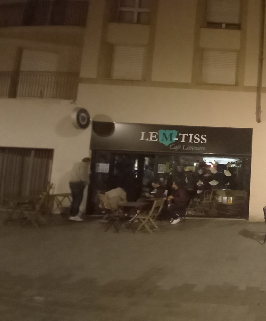 Le M-Tiss, situé au centre-ville de Metz, est un café littéraire où un ami va souvent et il m’y a emmenée quelques fois lors de mes séjours en Moselle. C’est un petit local très chaleureux, on s’y sent tout de suite bien, l’accueil est top. Il y a souvent des événements culturels organisés sur place, ainsi qu’une impressionnante bibliothèque. Ils ont aussi du très bon rhum et une excellente vodka à la mirabelle.